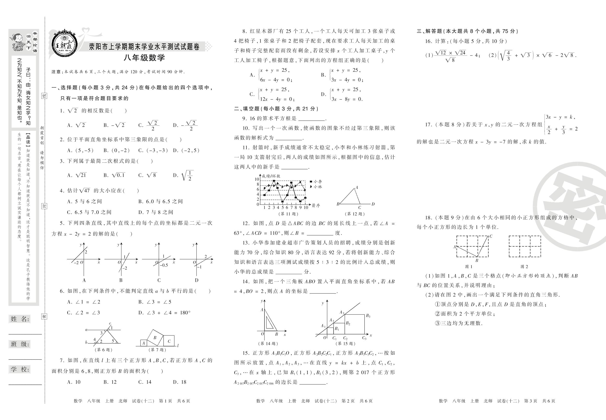 2016-2017学年第一学期荥阳市八年级数学试卷(北师版)【12】