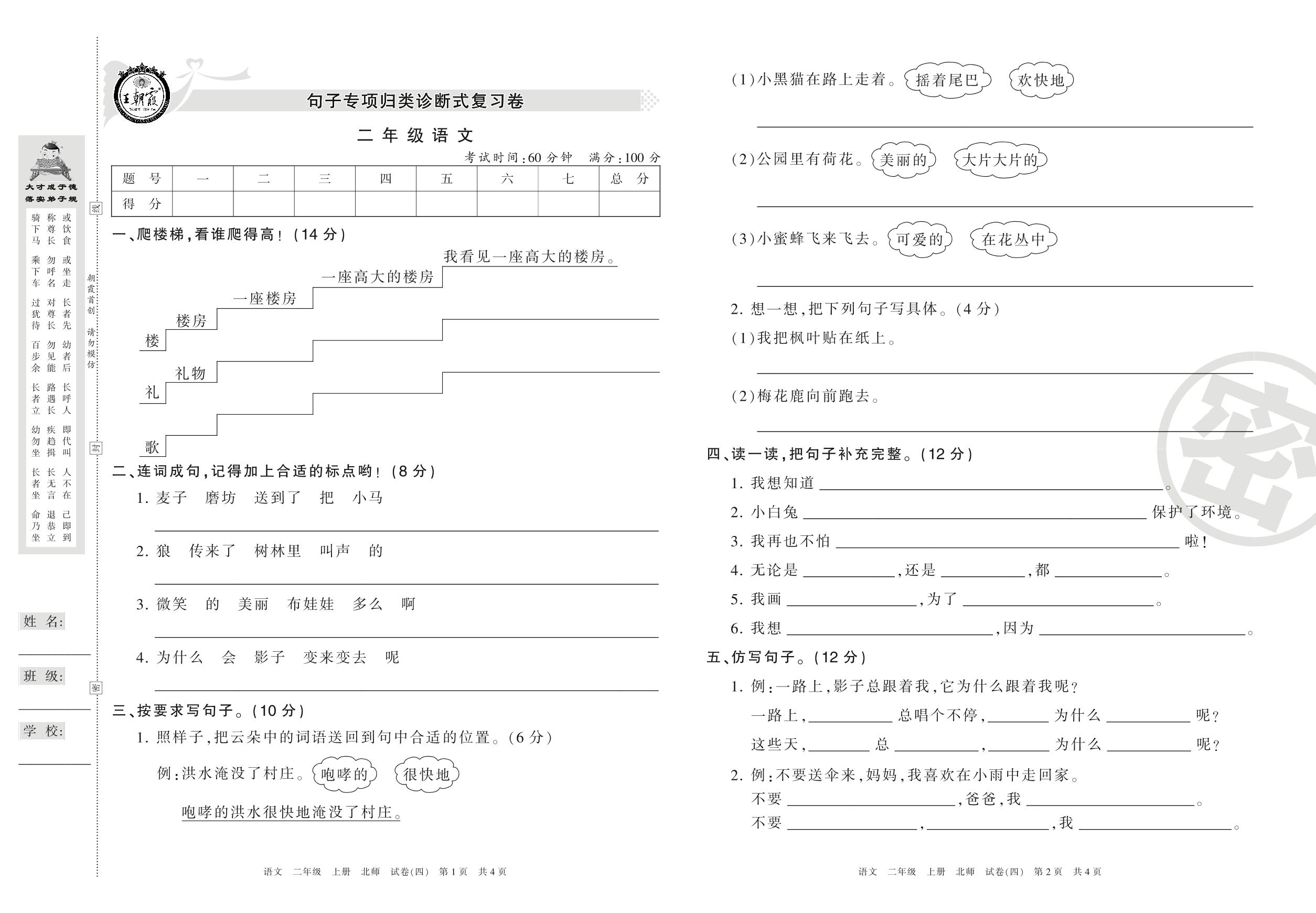 王朝霞期末专项卷二年级上册语文(北师版)_R21080175514【4】