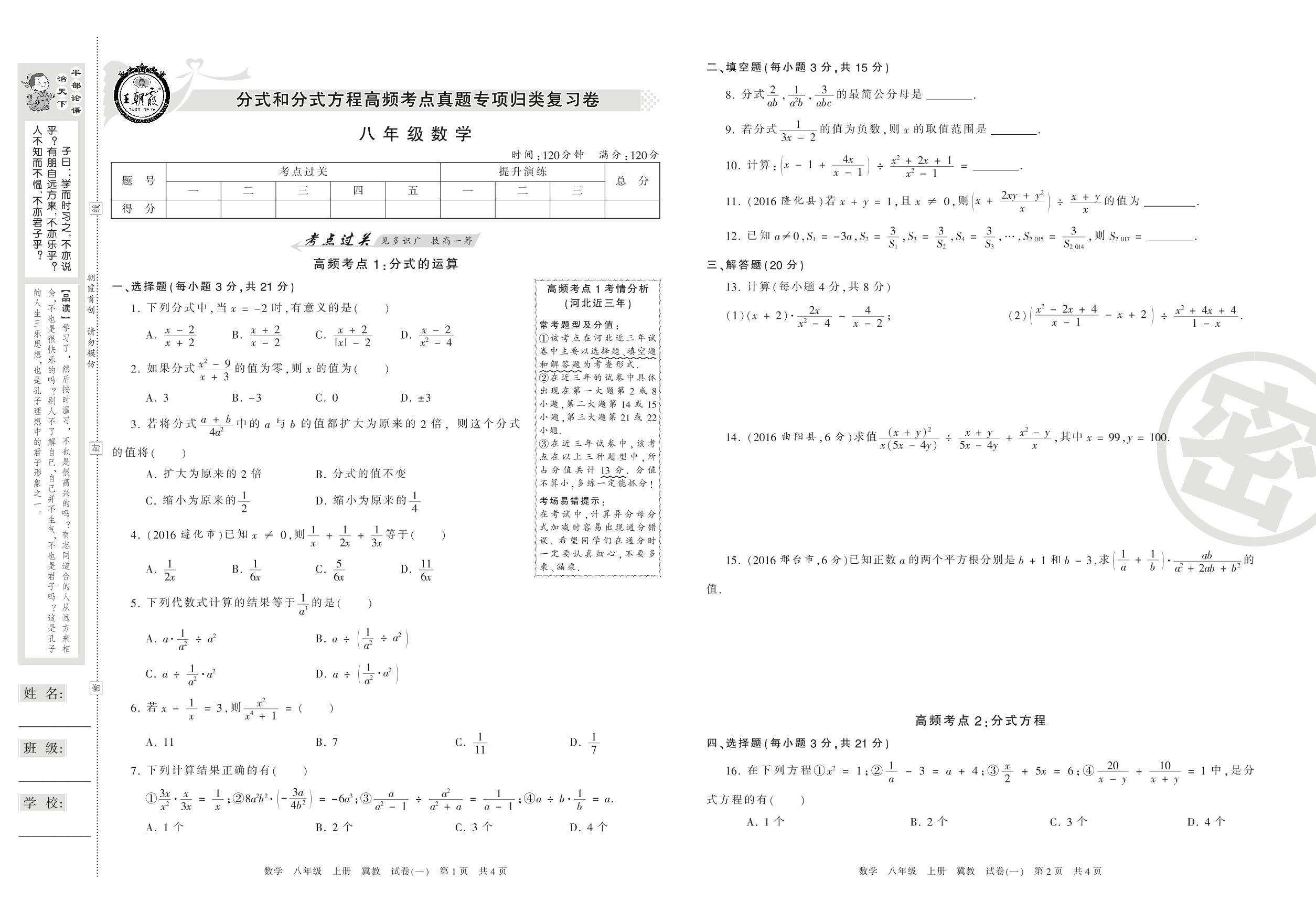 王朝霞期末专项卷八年级上册数学(冀教版)【1】