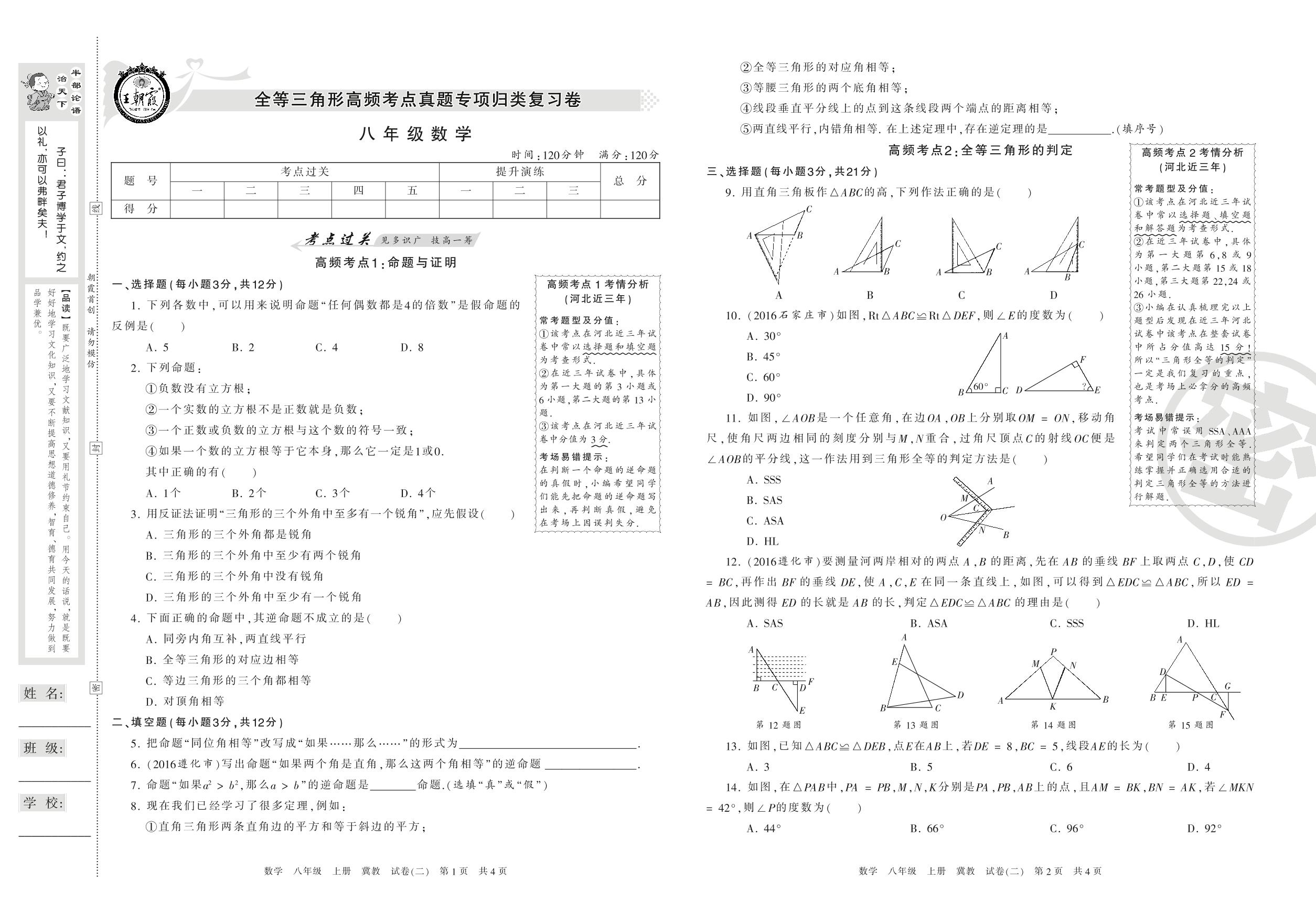 王朝霞期末专项卷八年级上册数学(冀教版)【2】