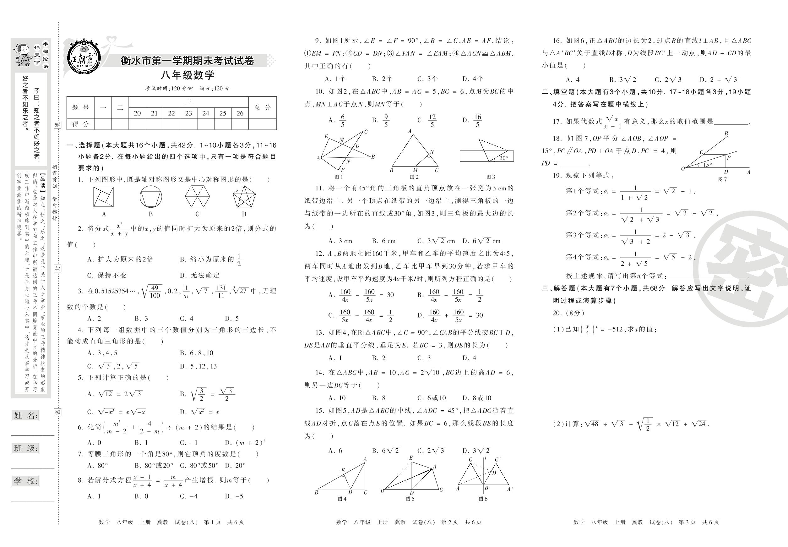 2016-2017学年第一学期衡水市八年级数学试卷(冀教版)【8】