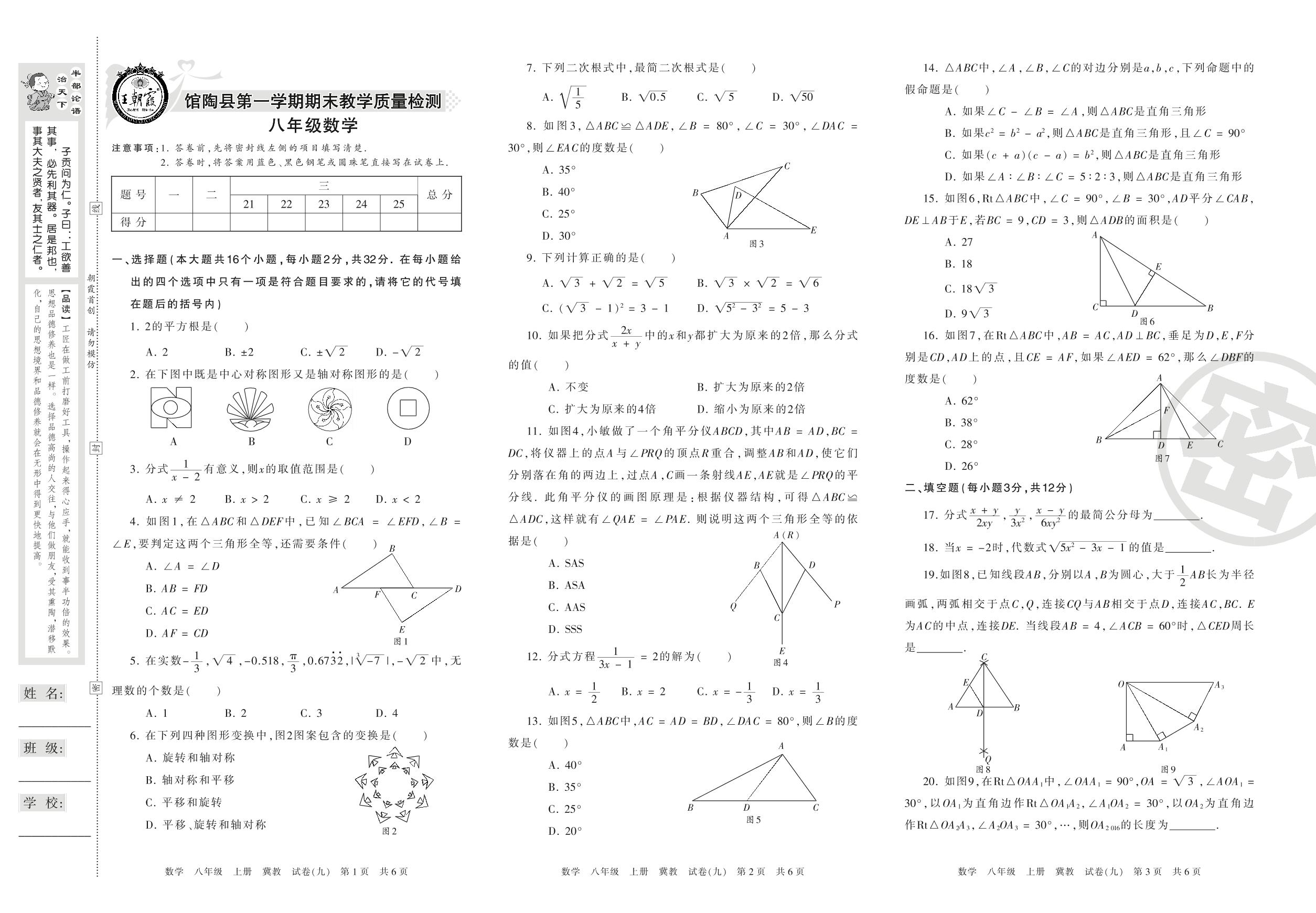 2016-2017学年第一学期邯郸市馆陶县八年级数学试卷(冀教版)【9】