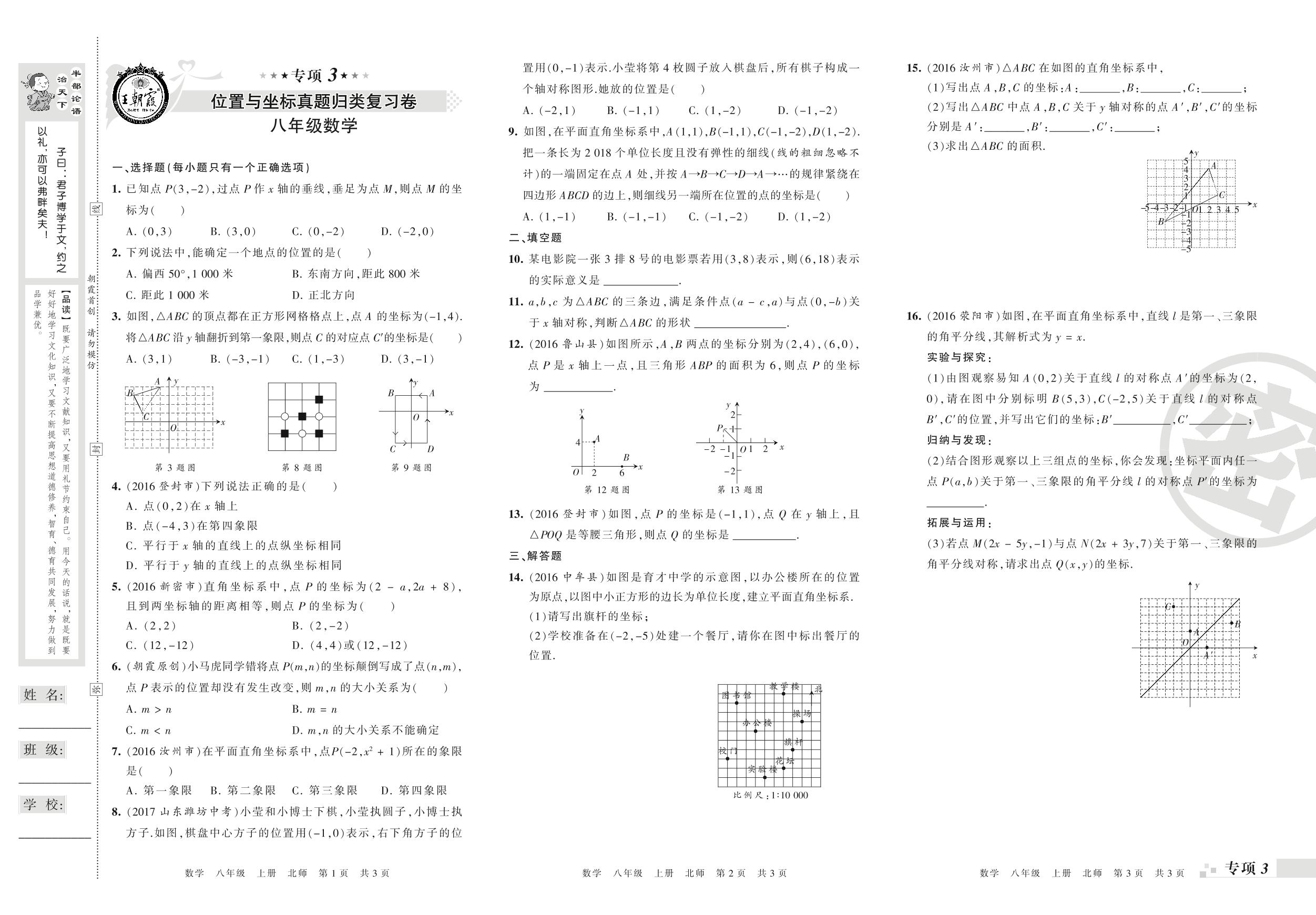 王朝霞期末专项卷——位置与坐标、一次函数(一)真题归类复习卷八年级上册数学(北师版)_R210806134133【0】