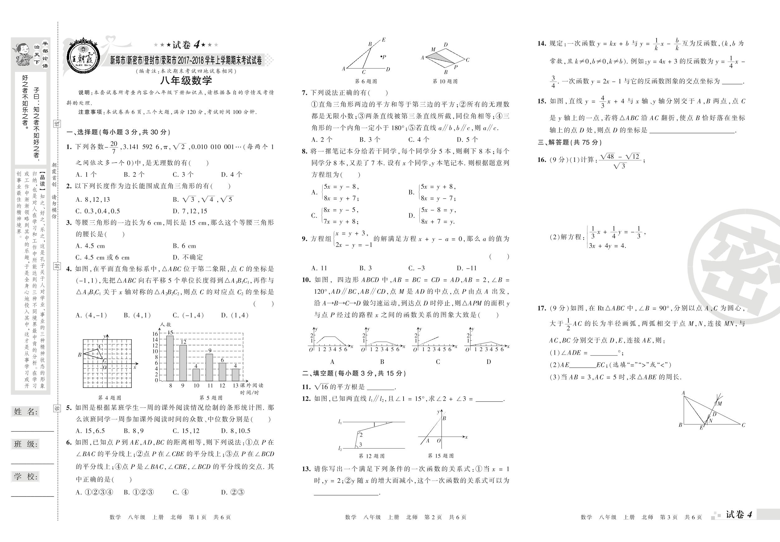 2017-2018学年第一学期新郑市、新密市、登封市、荥阳市八年级数学试卷(北师版)【4】
