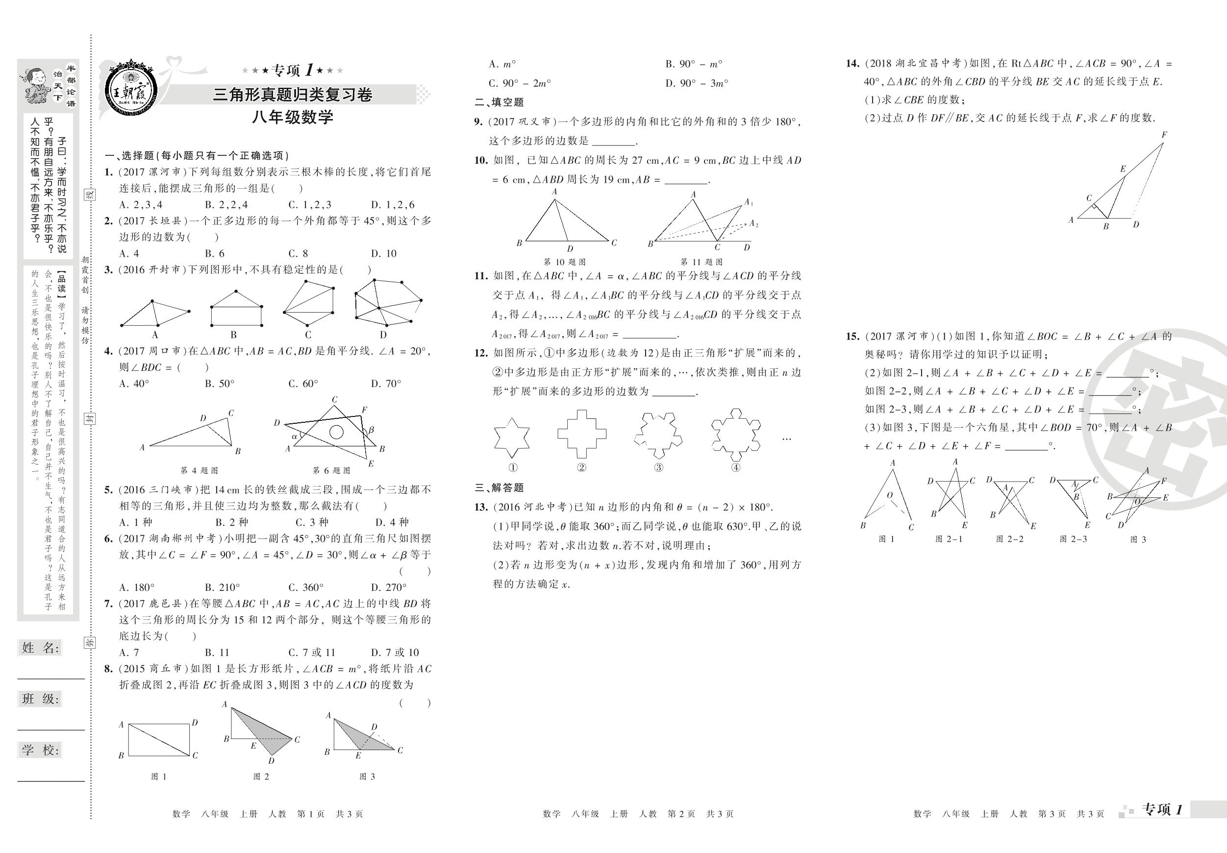 王朝霞期末专项卷——三角形、全等三角形(一)真题归类复习卷八年级上册数学(人教版)_R210806134346【0】