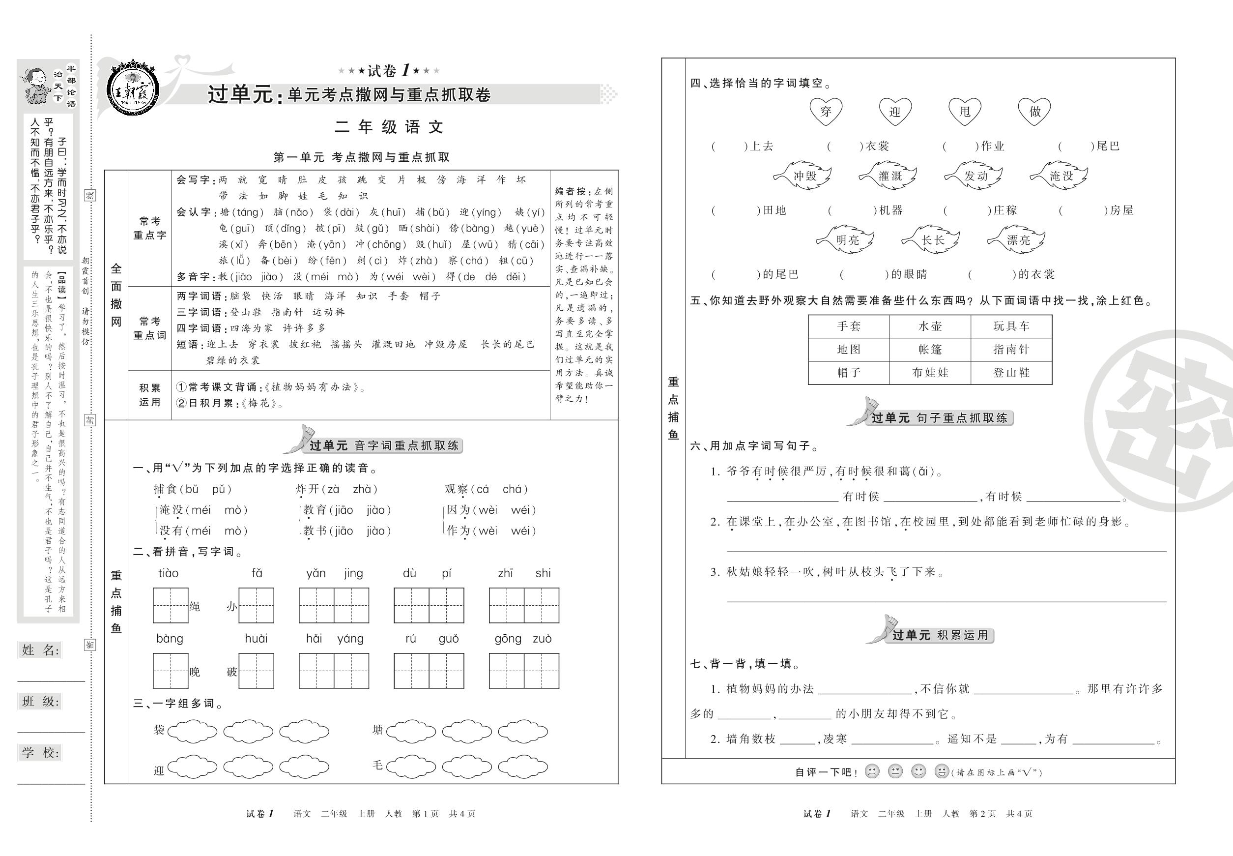 二年级语文人教版上册单元卷