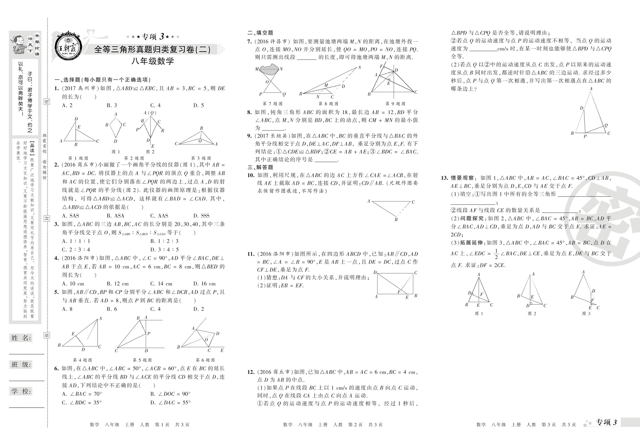 王朝霞期末专项卷——全等三角形(二)、轴对称真题归类复习卷八年级上册数学(人教版)_R210806134350【0】