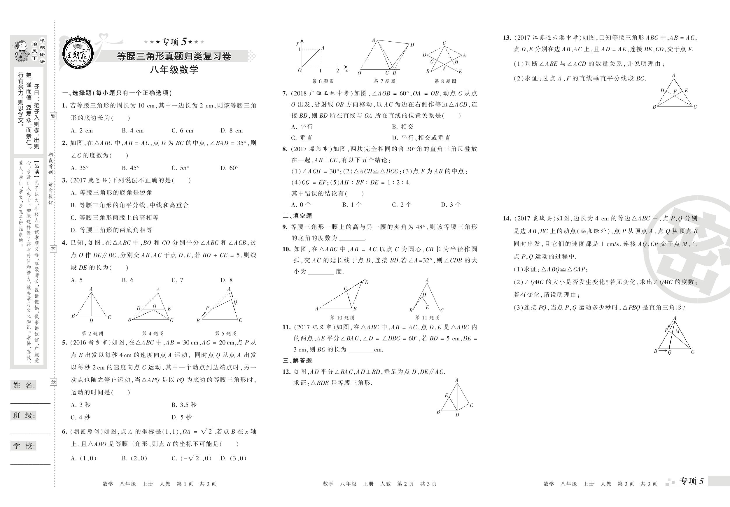 王朝霞期末专项卷——等腰三角形、整式的乘法与因式分解真题归类复习卷八年级上册数学(人教版)_R210806134354【0】