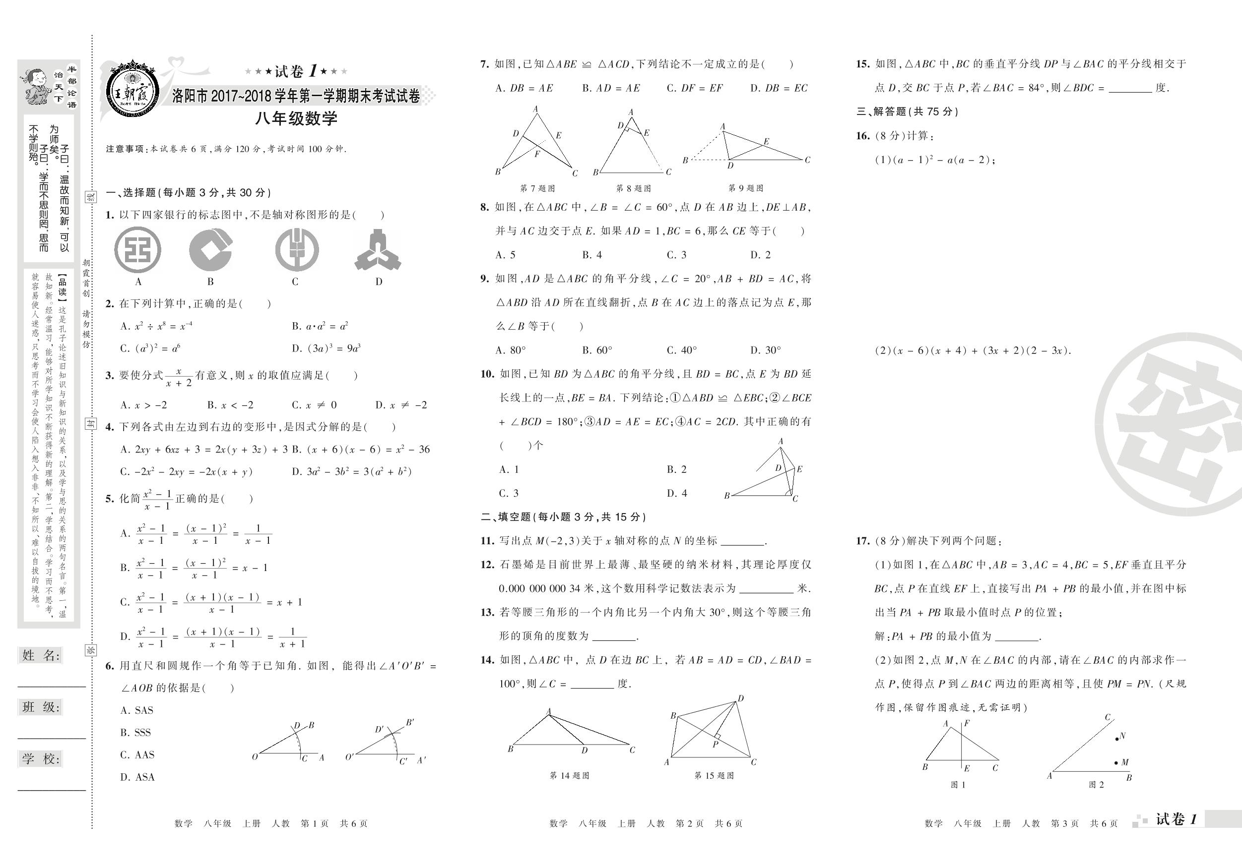 2017-2018学年第一学期洛阳市八年级数学试卷(人教版)_R210806134402【1】