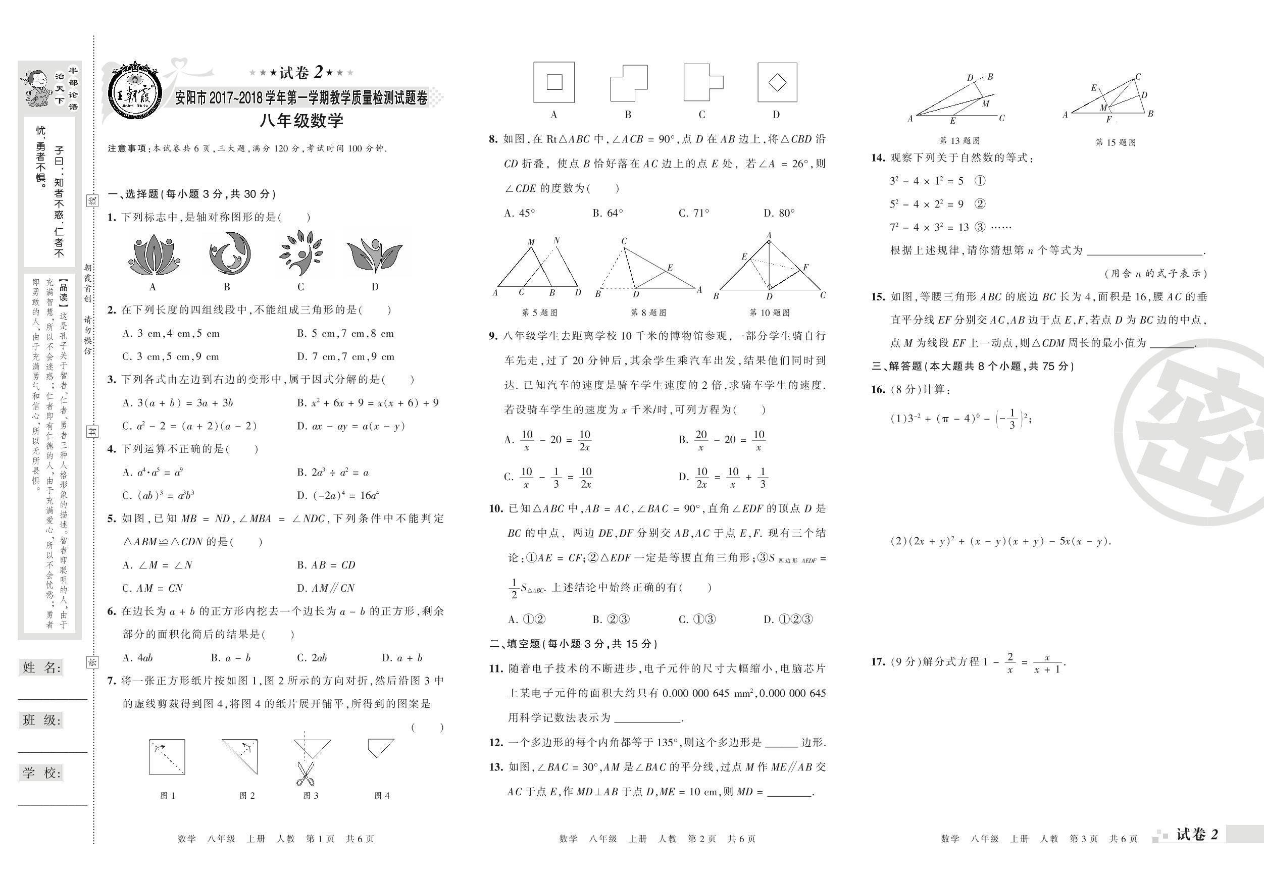 2017-2018学年第一学期安阳市八年级数学试卷(人教版)_R210806134406【2】