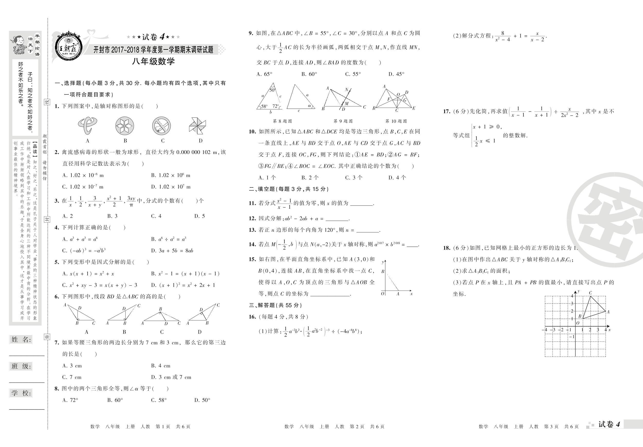 2017-2018学年第一学期开封市八年级数学试卷(人教版)【4】
