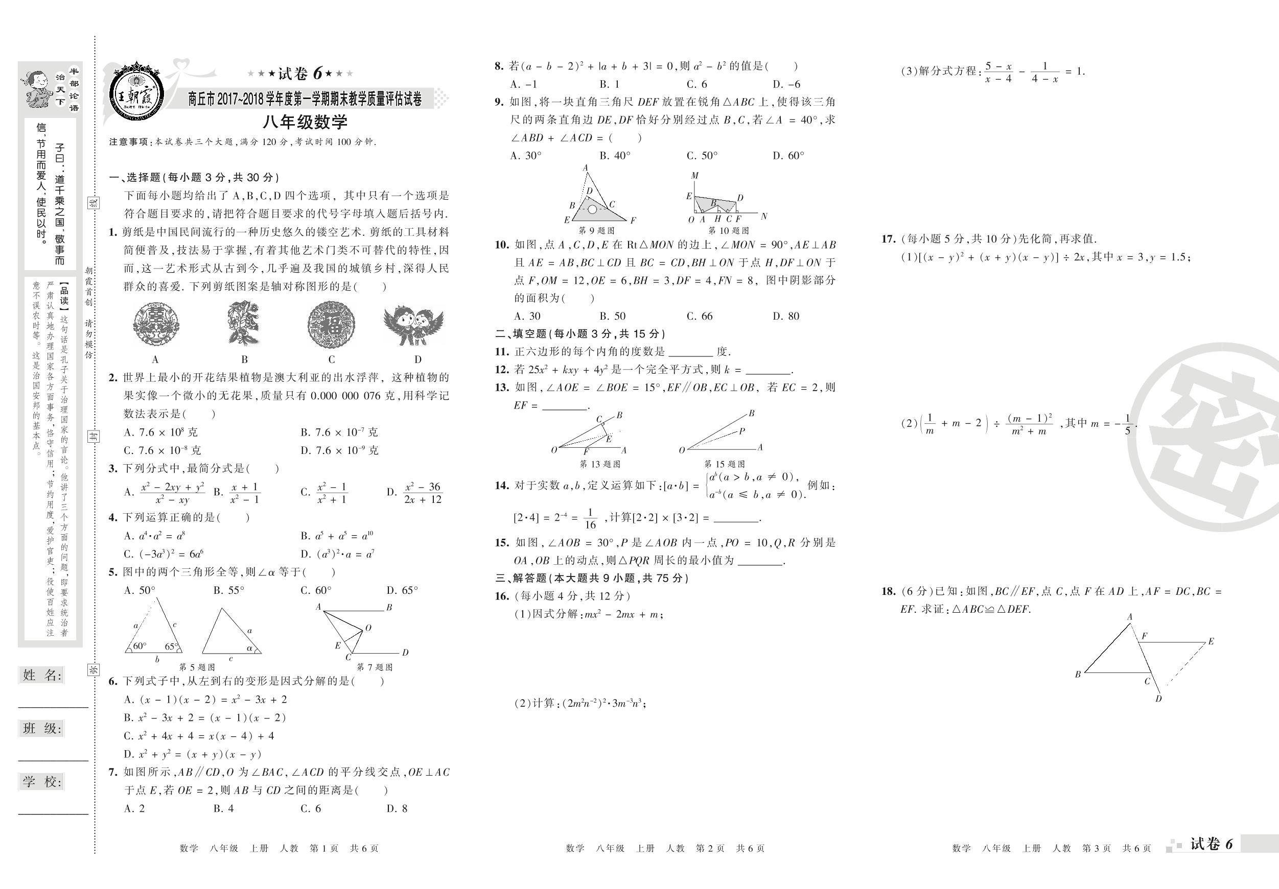 2017-2018学年第一学期商丘市八年级数学试卷(人教版)【6】