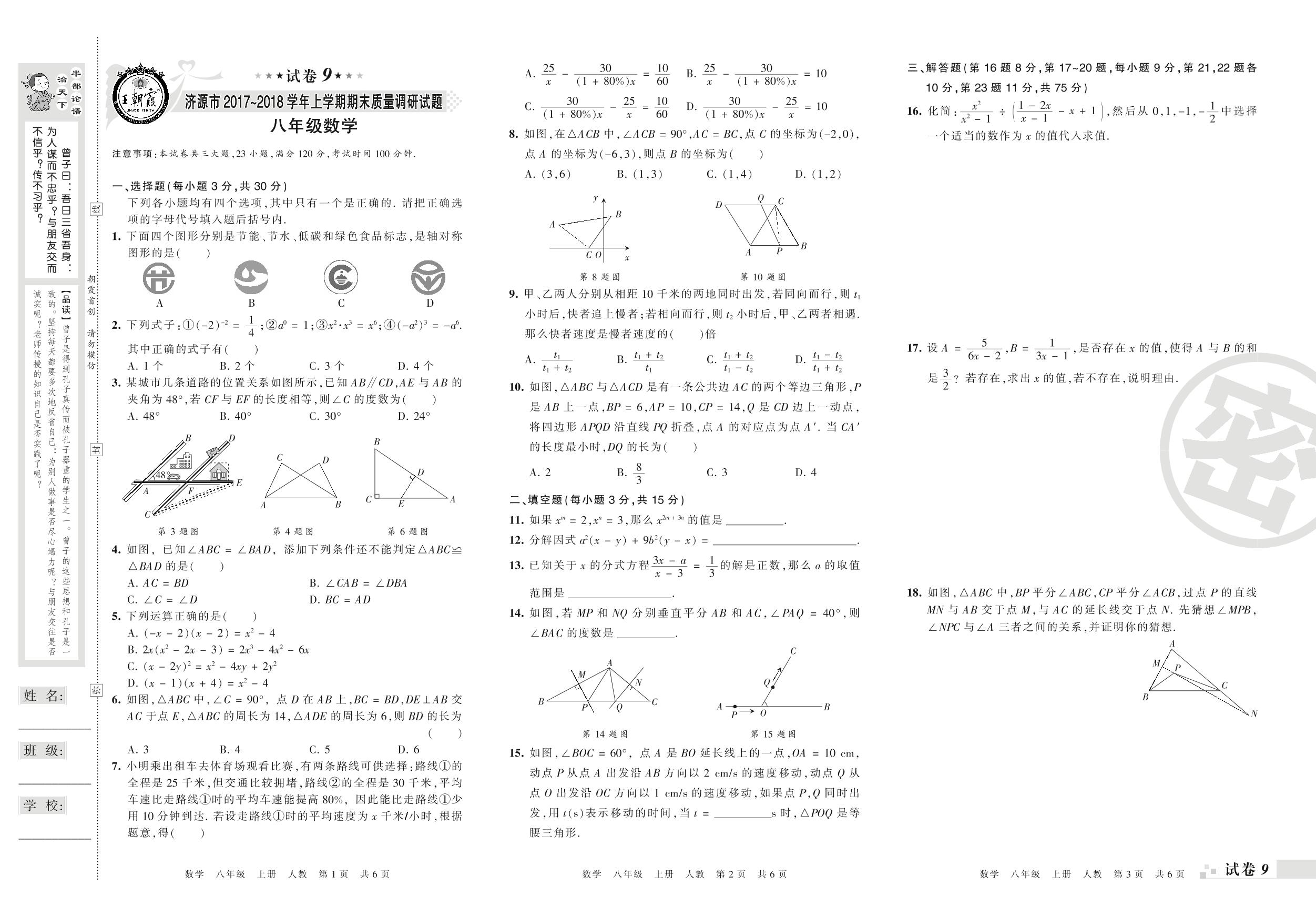 2017-2018学年第一学期济源市八年级数学试卷(人教版)【9】