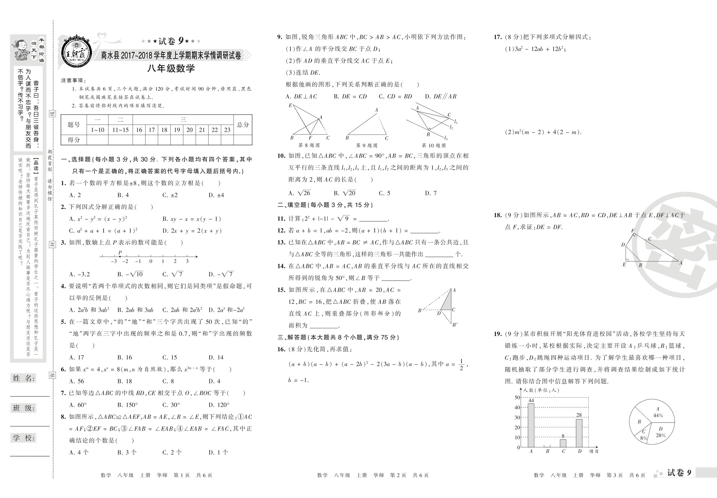 2017-2018学年第一学期周口市商水县八年级数学试卷(华师版)【9】