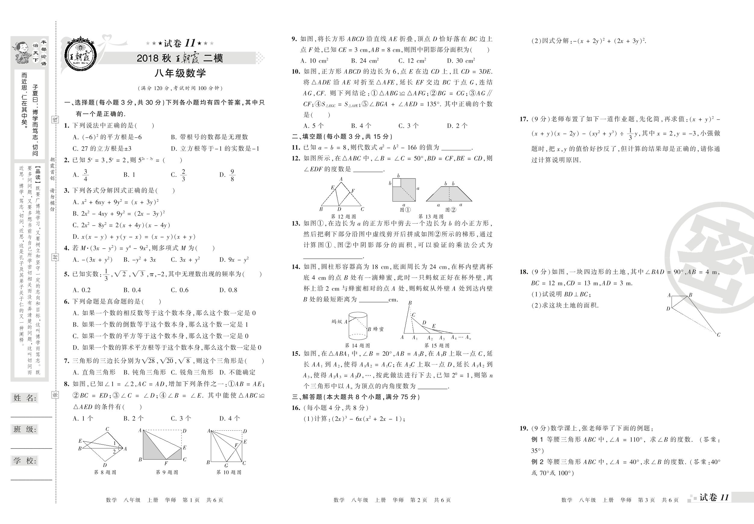 王朝霞期末模拟卷八年级上册数学(华师版)_R210806134548【11】