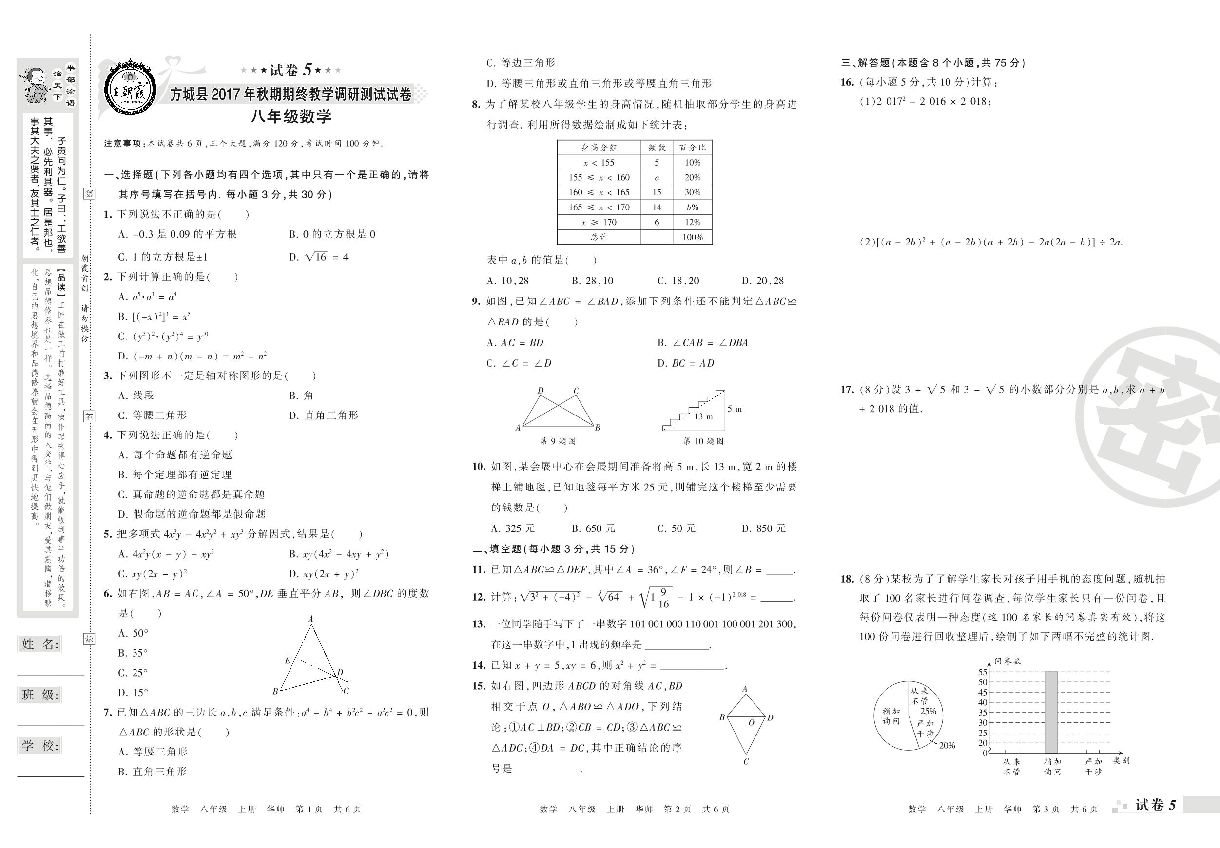 2017-2018学年第一学期南阳市方城县八年级数学试卷(华师版)【5】