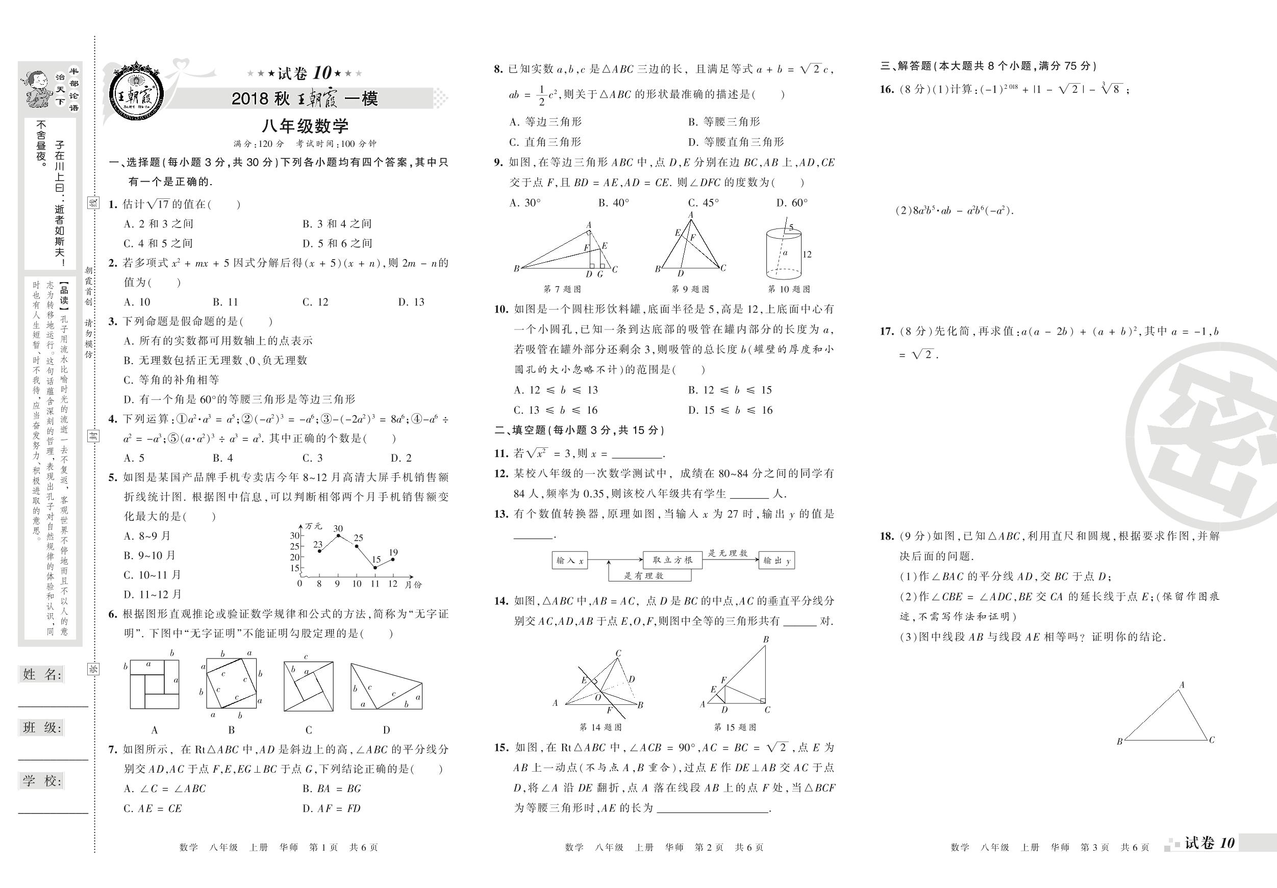 王朝霞期末模拟卷八年级上册数学(华师版)_R210806134925【10】