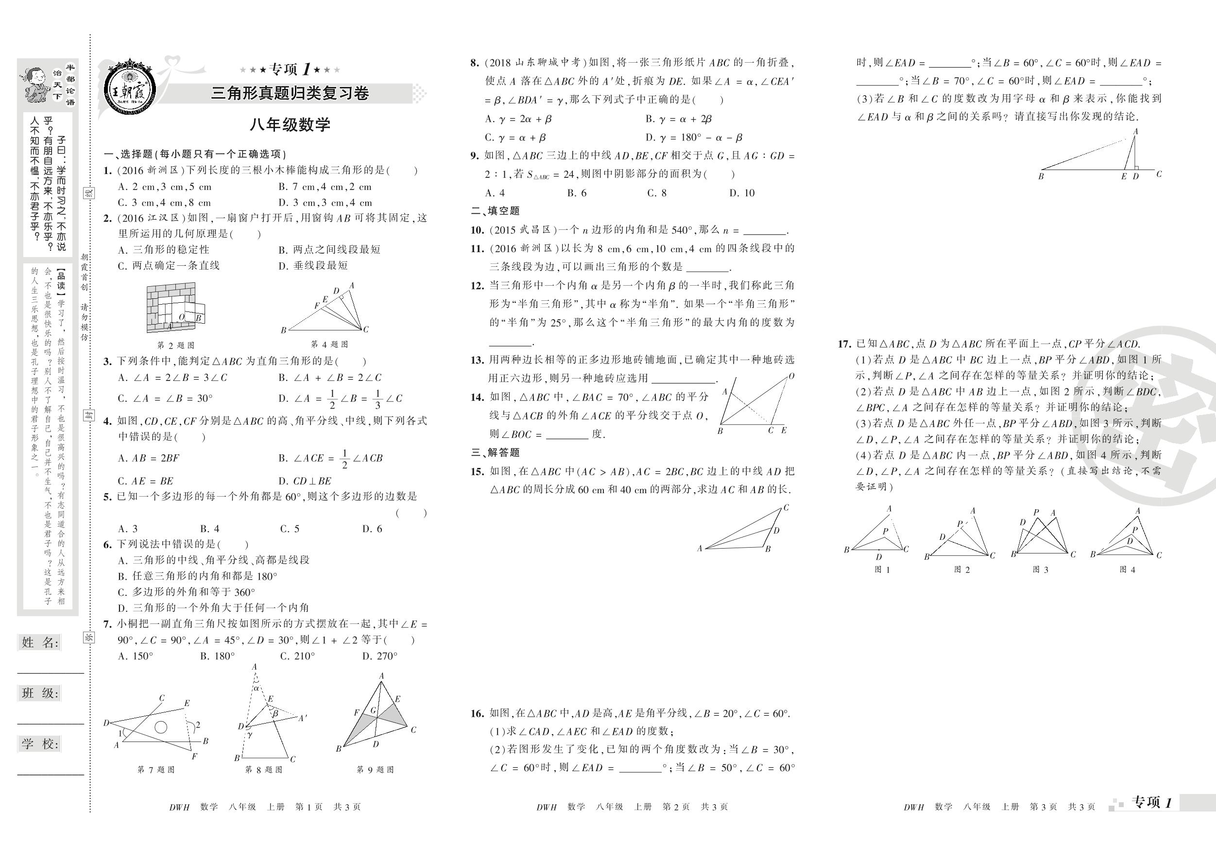 王朝霞期末专项卷——三角形、全等三角形(一)真题归类复习卷八年级上册数学(人教版)_R210806134937【0】