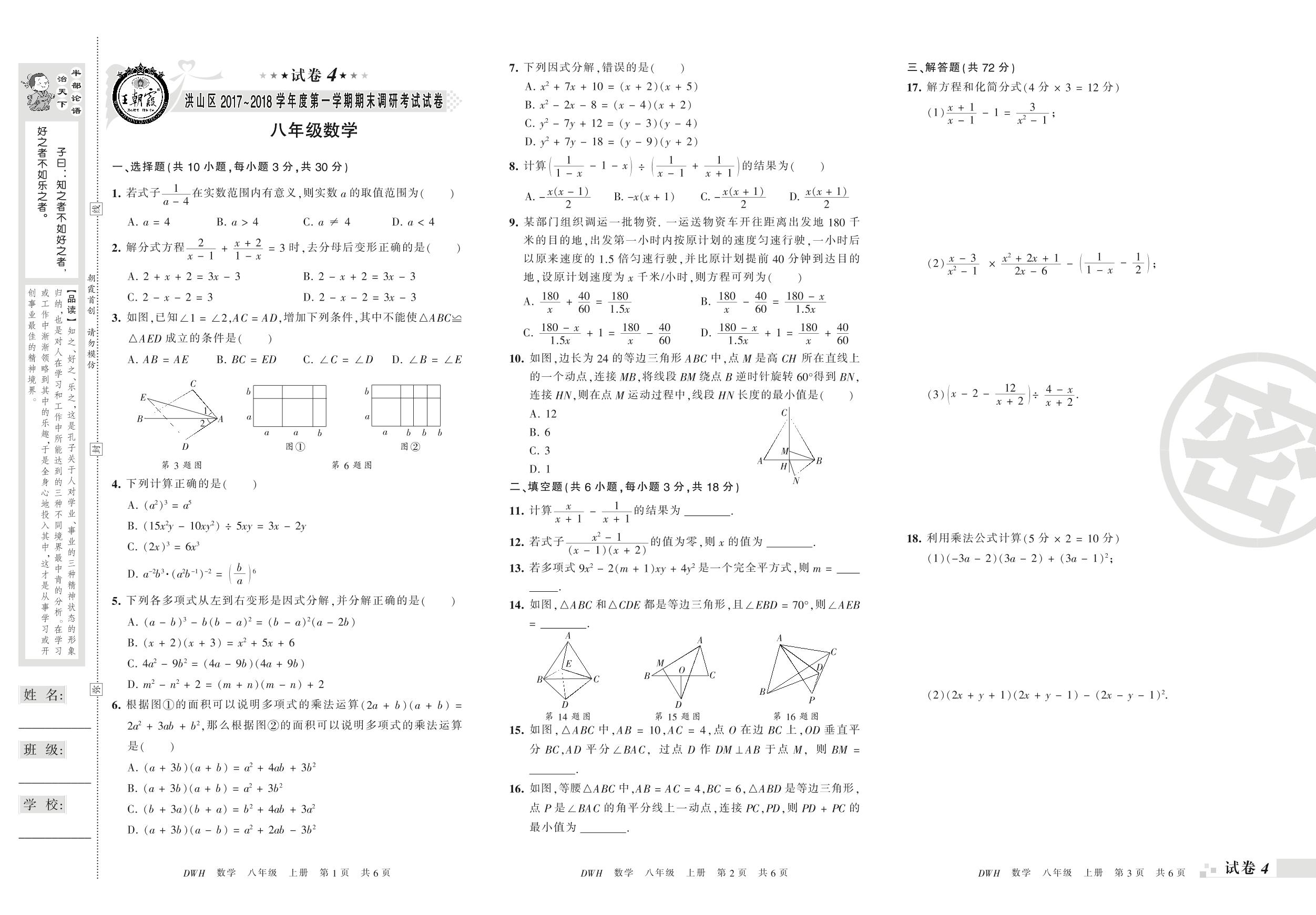 2017-2018学年第一学期武汉市洪山区八年级数学试卷(人教版)【4】