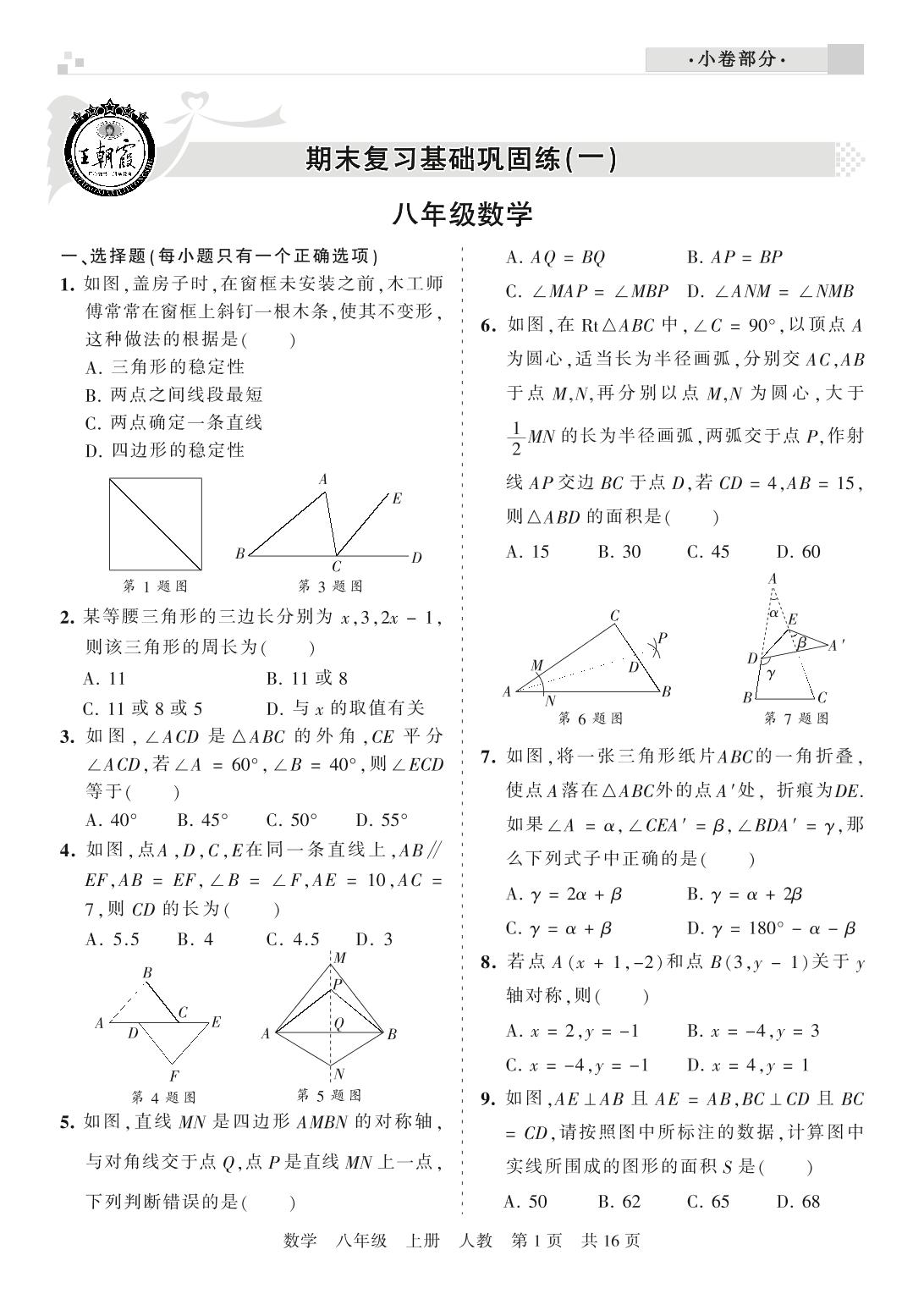 王朝霞期末小卷——期末复习基础巩固练八年级上册数学(人教版)【0】