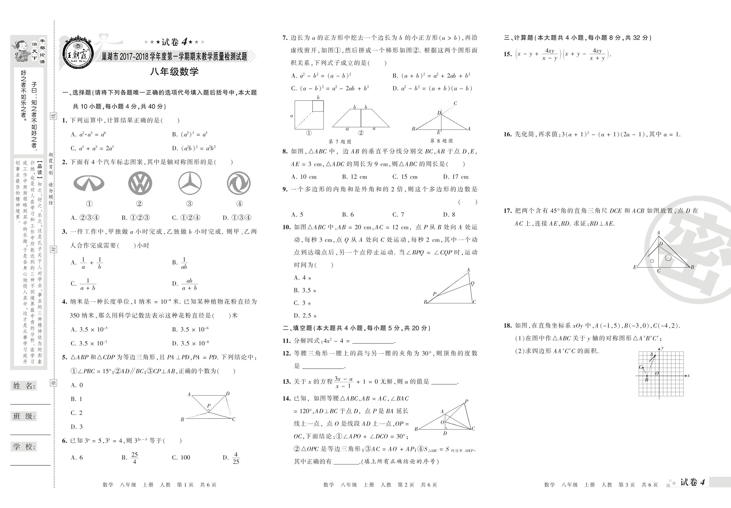 2017-2018学年第一学期巢湖市八年级数学试卷(人教版)【4】