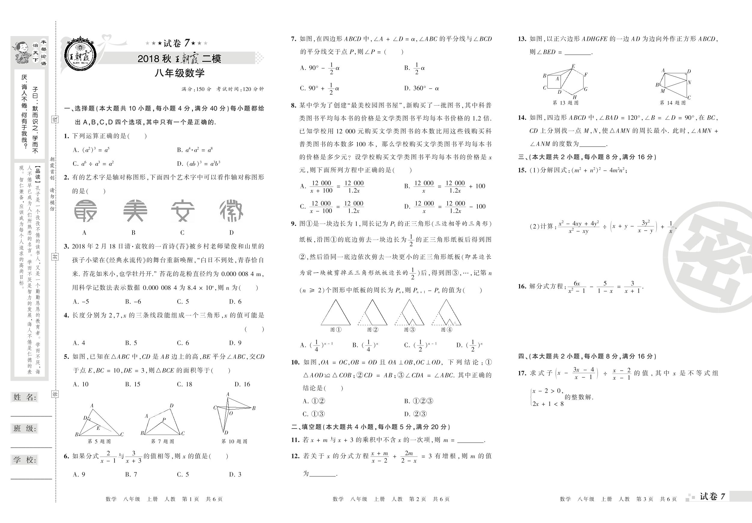 王朝霞期末模拟卷八年级上册数学(人教版)_R210806135548【7】