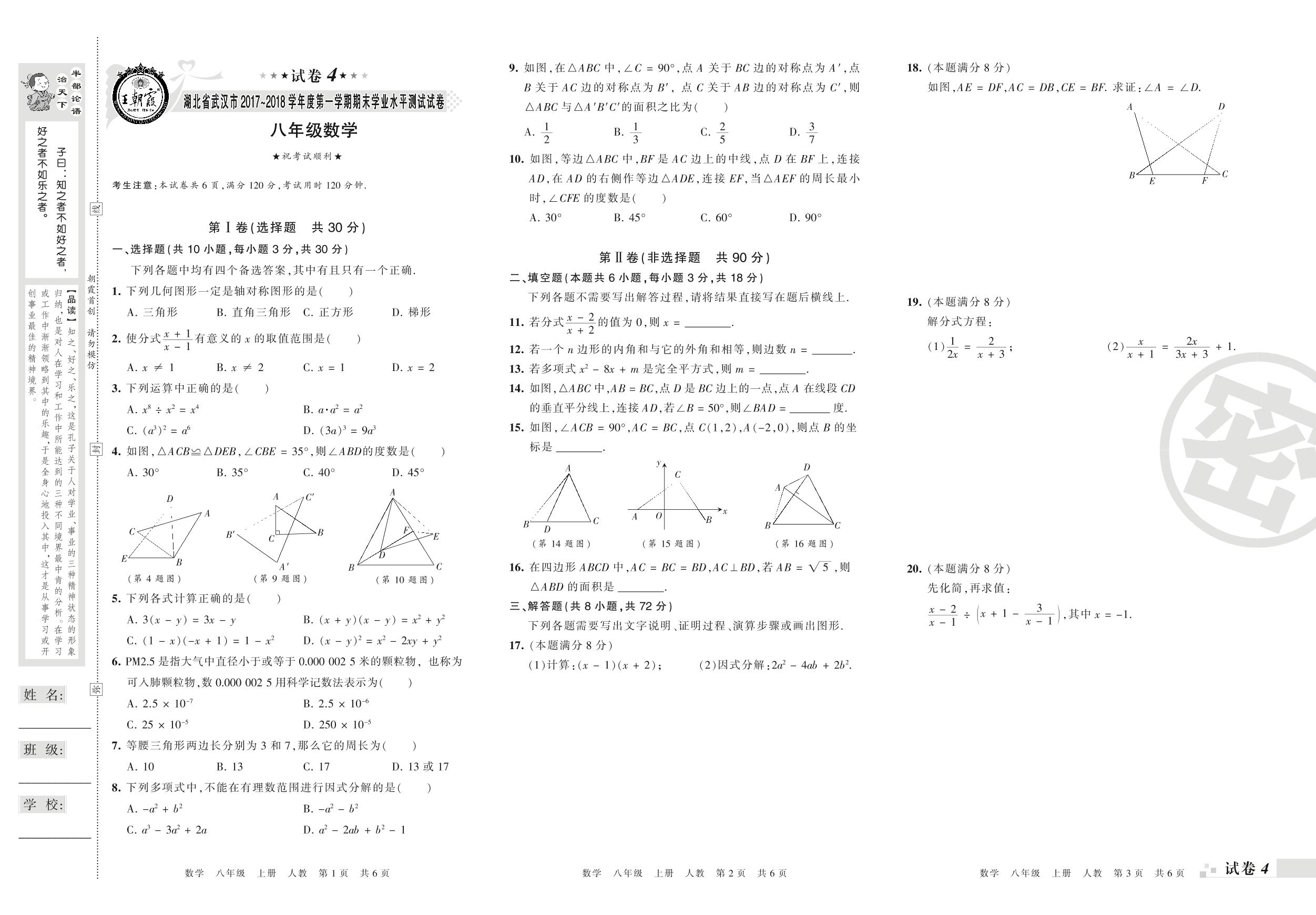 2017-2018学年第一学期湖北省武汉市八年级数学试卷(人教版)【4】