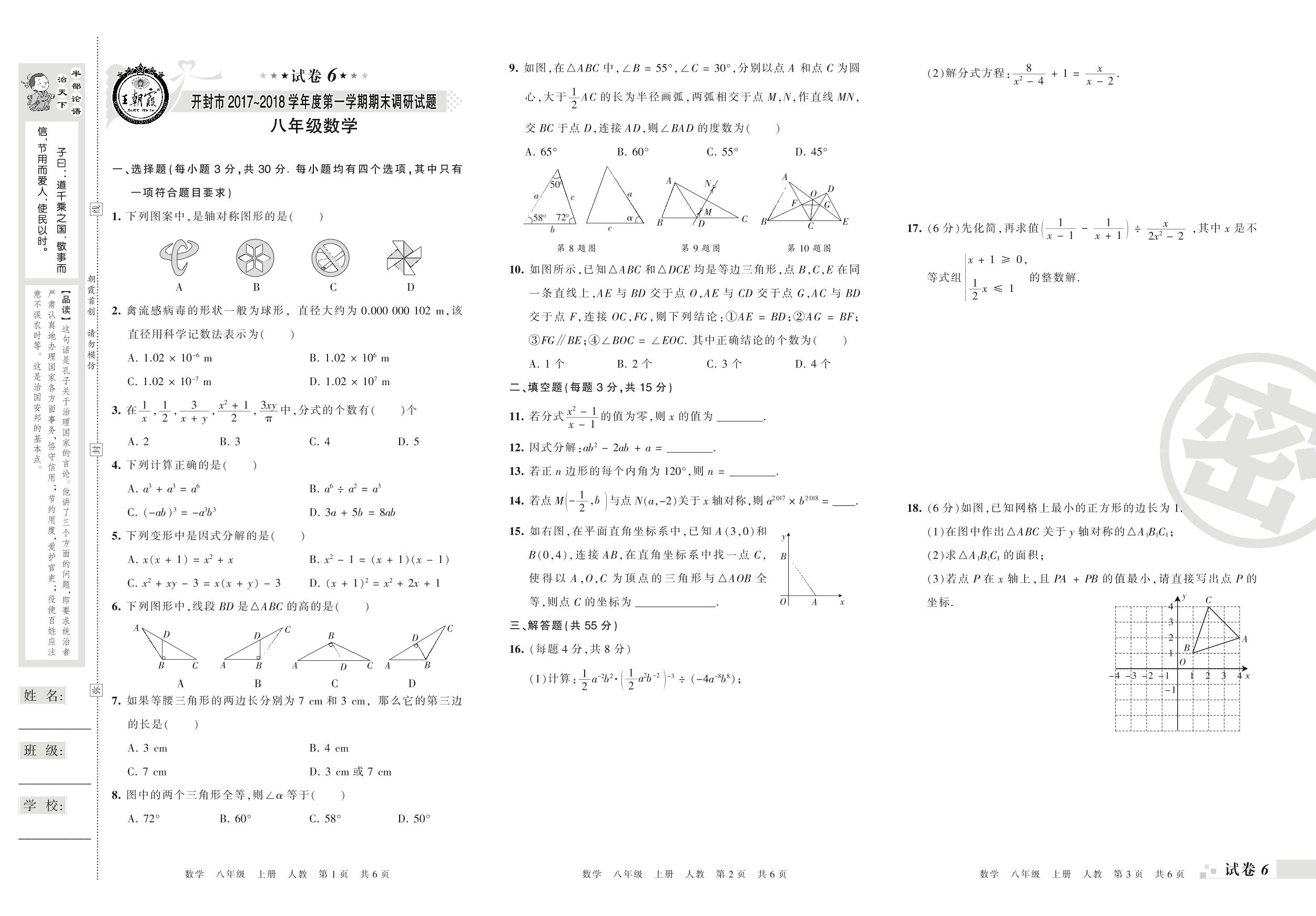 2017-2018学年第一学期开封市八年级数学试卷(人教版)【6】