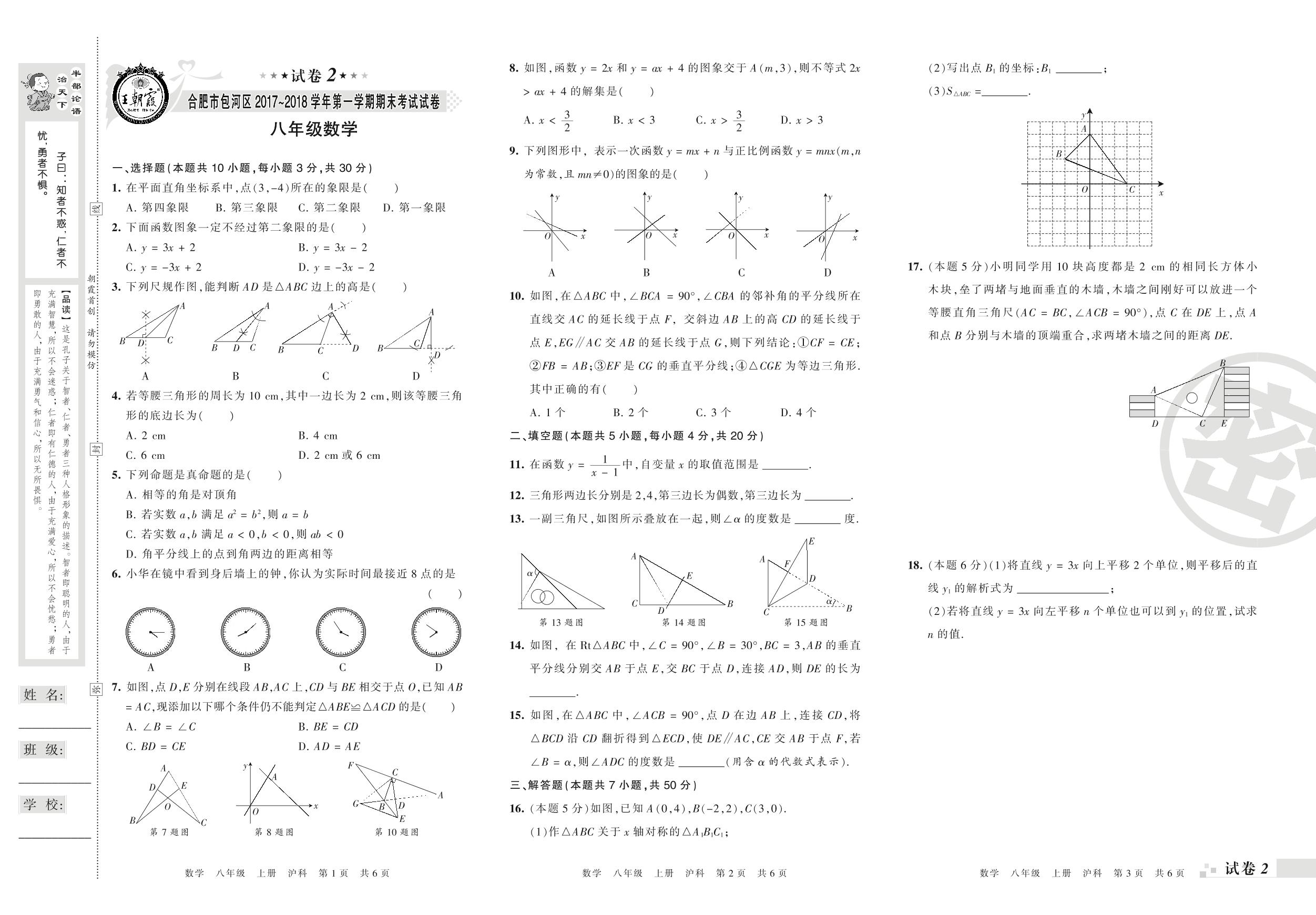 2017-2018学年第一学期合肥市包河区八年级数学试卷(沪科版)【2】