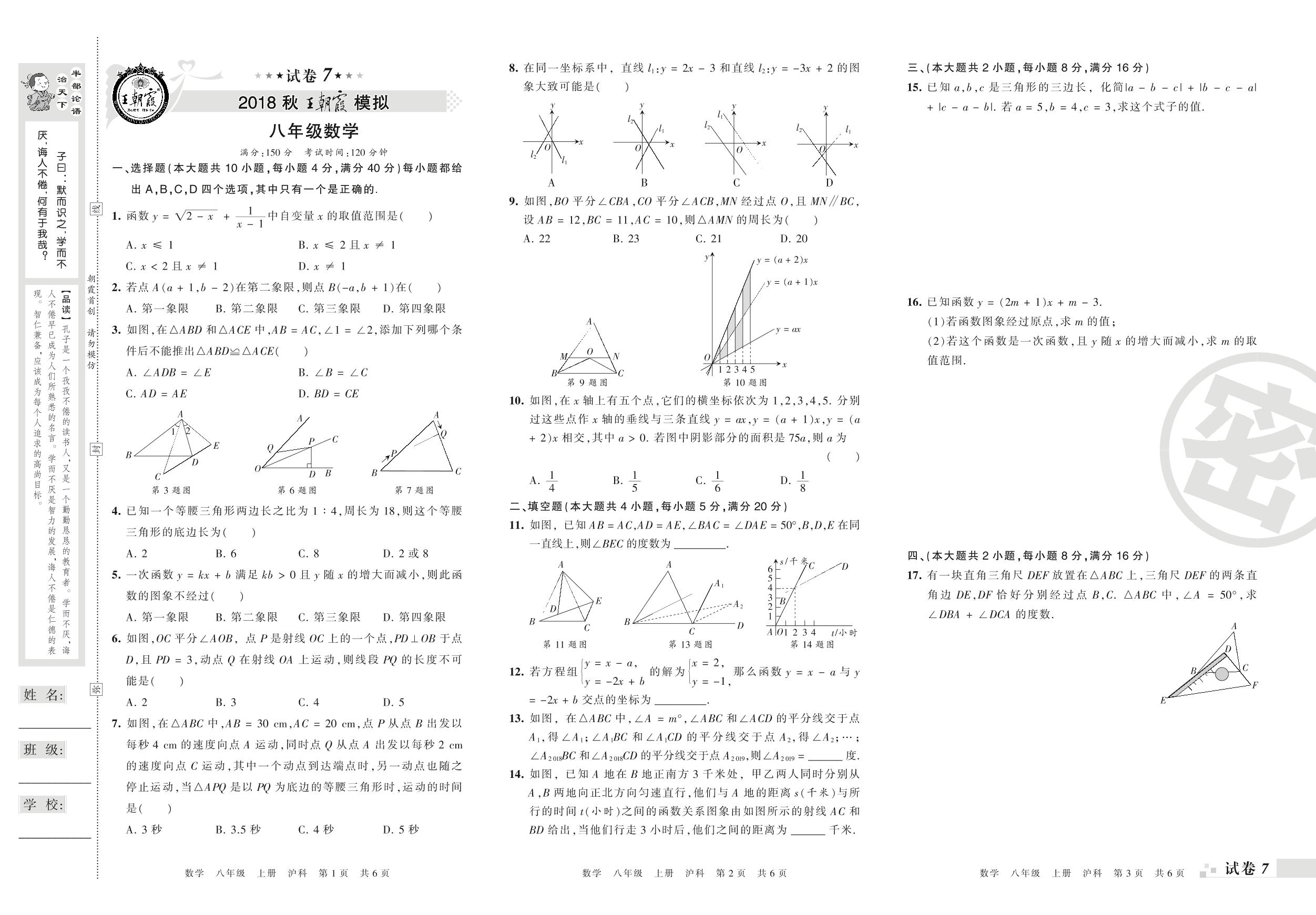 王朝霞期末模拟八年级上册数学(沪科版)【7】