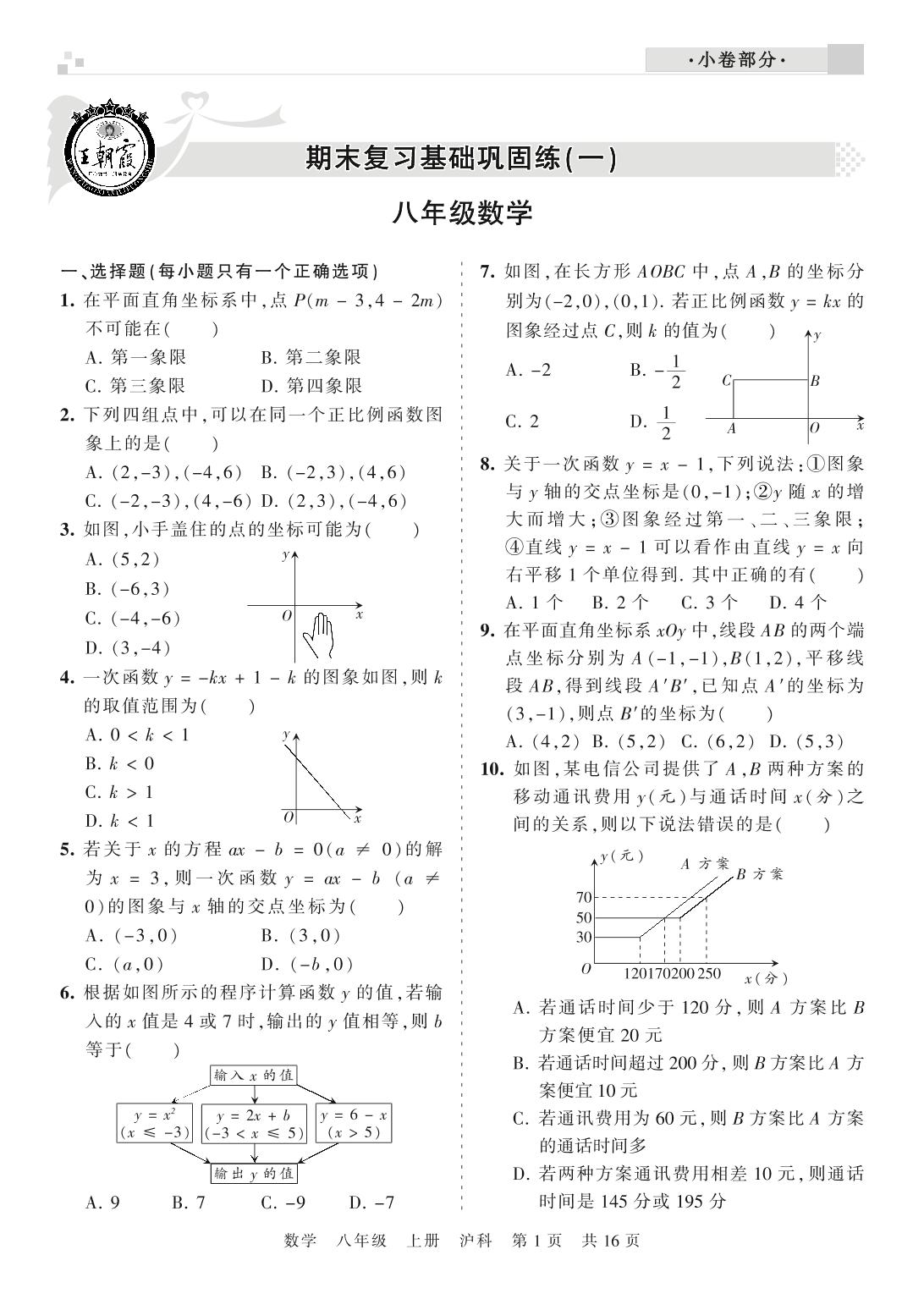 王朝霞期末复习基础巩固练八年级上册数学(沪科版)_R210806135806【0】
