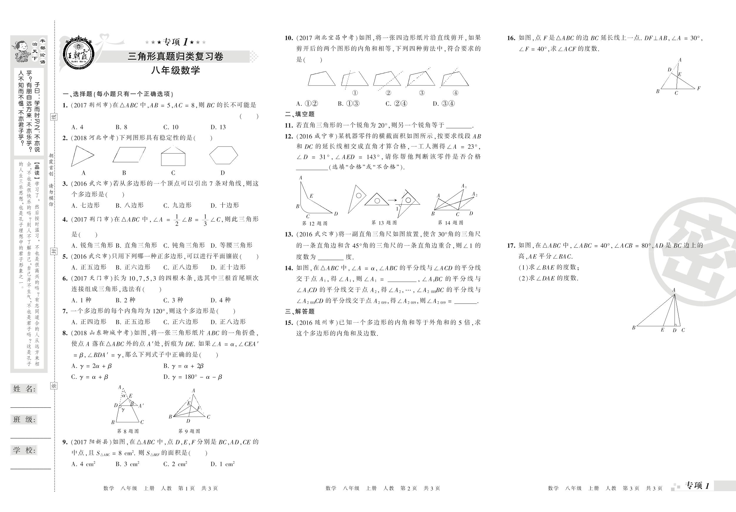 王朝霞期末专项卷——三角形、全等三角形(一)真题归类复习卷八年级上册数学(人教版)_R210806144507【0】