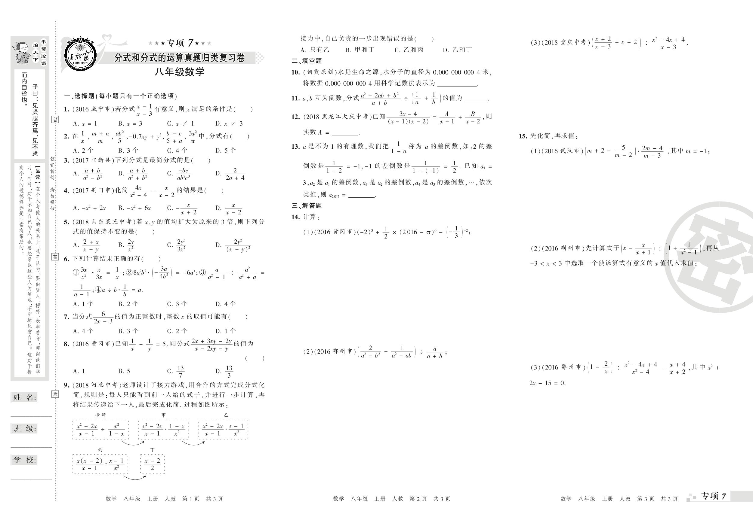 王朝霞期末专项卷——分式和分式的运算、分式方程真题归类复习卷八年级上册数学(人教版)_R210806144519【0】