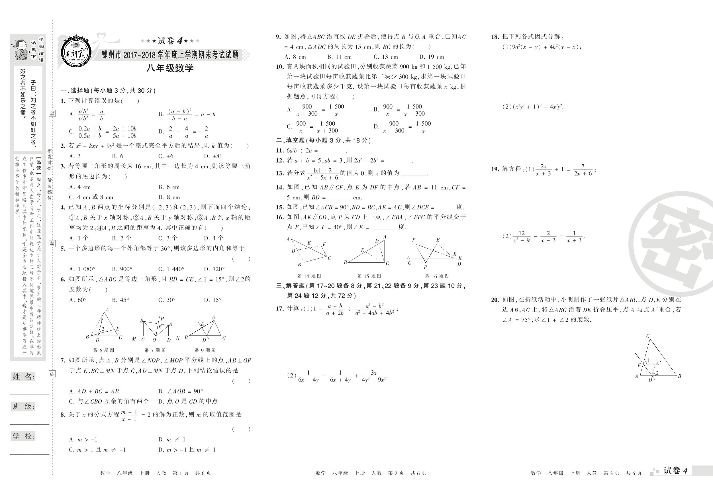 2017-2018学年第一学期鄂州市八年级数学试卷(人教版)_R210806144538【4】
