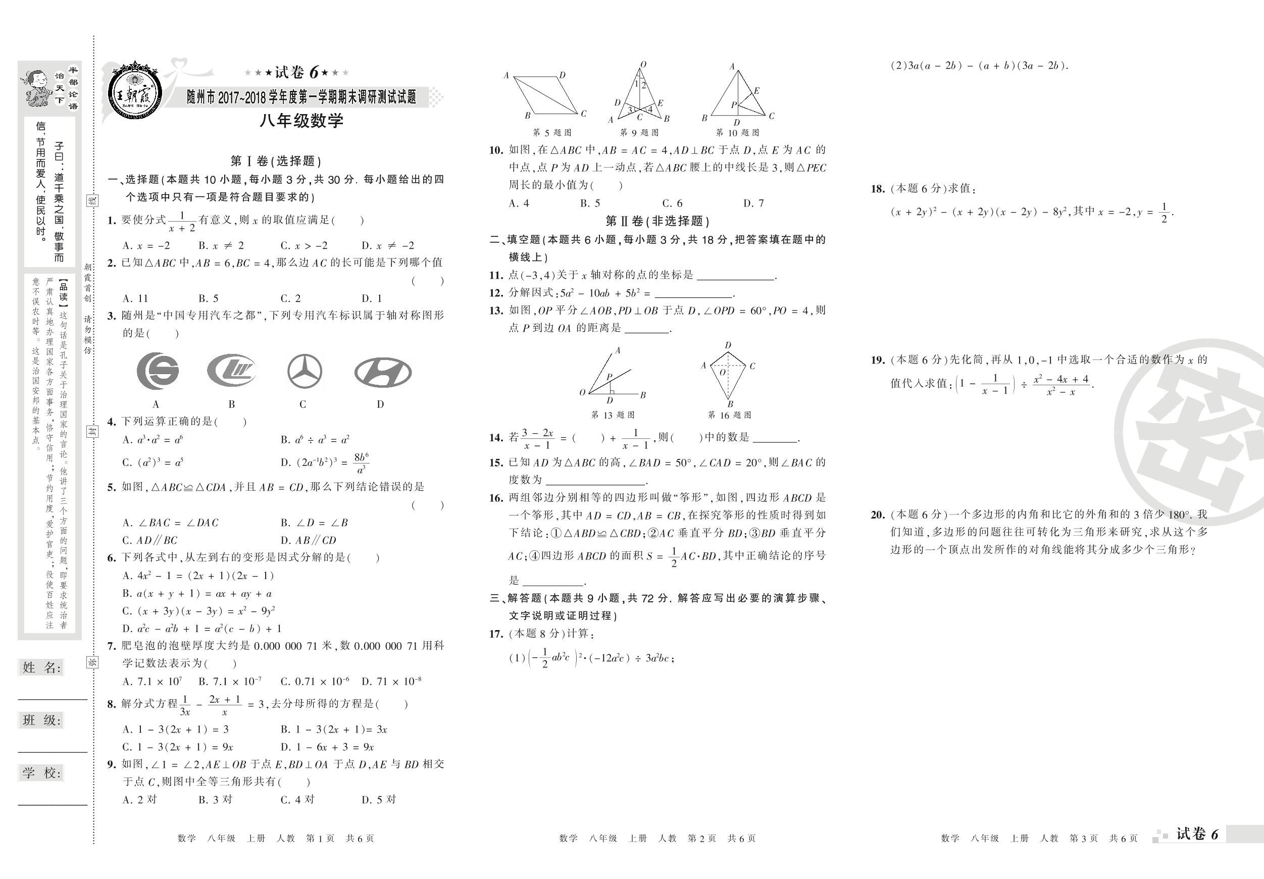 2017-2018学年第一学期随州市八年级数学试卷(人教版)_R210806144551【6】