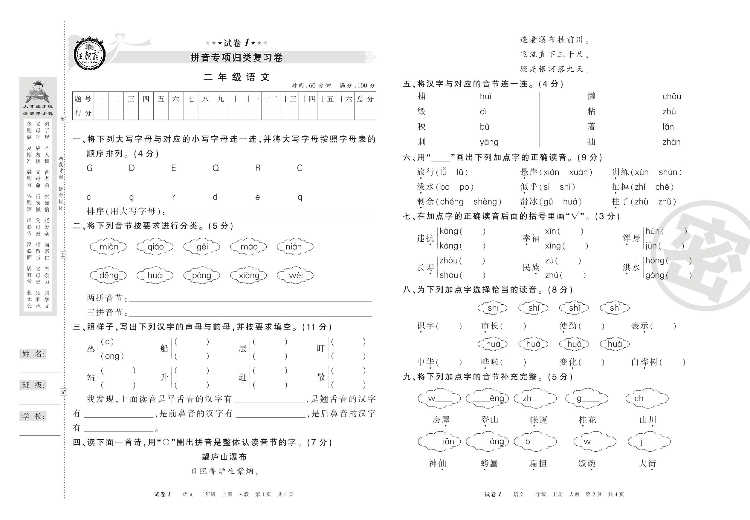 王朝霞期末专项卷二年级上册语文(人教版)_R21080175729【1】