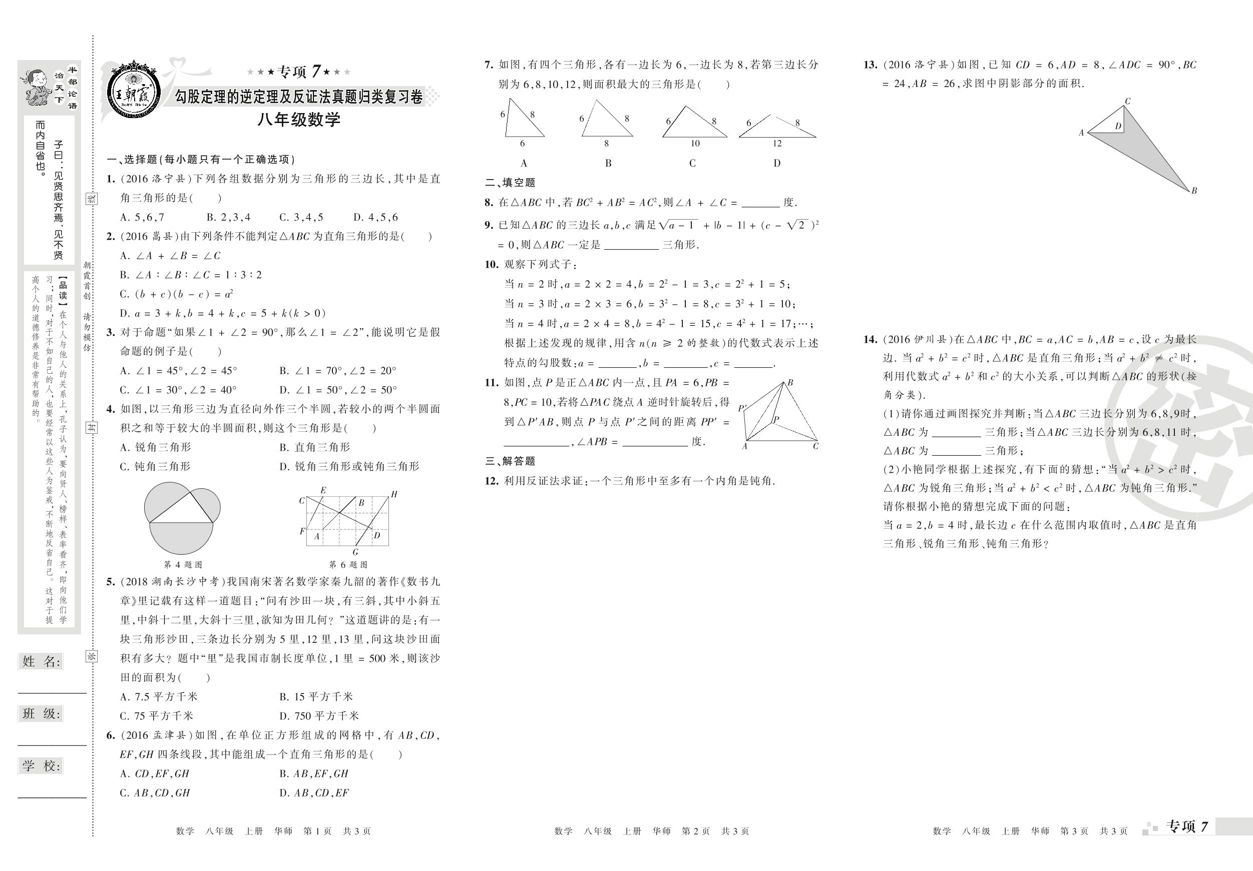 王朝霞期末专项卷——勾股定理的逆定理及反证法、数据的收集与表示真题归类复习八年级上册数学(华师版)