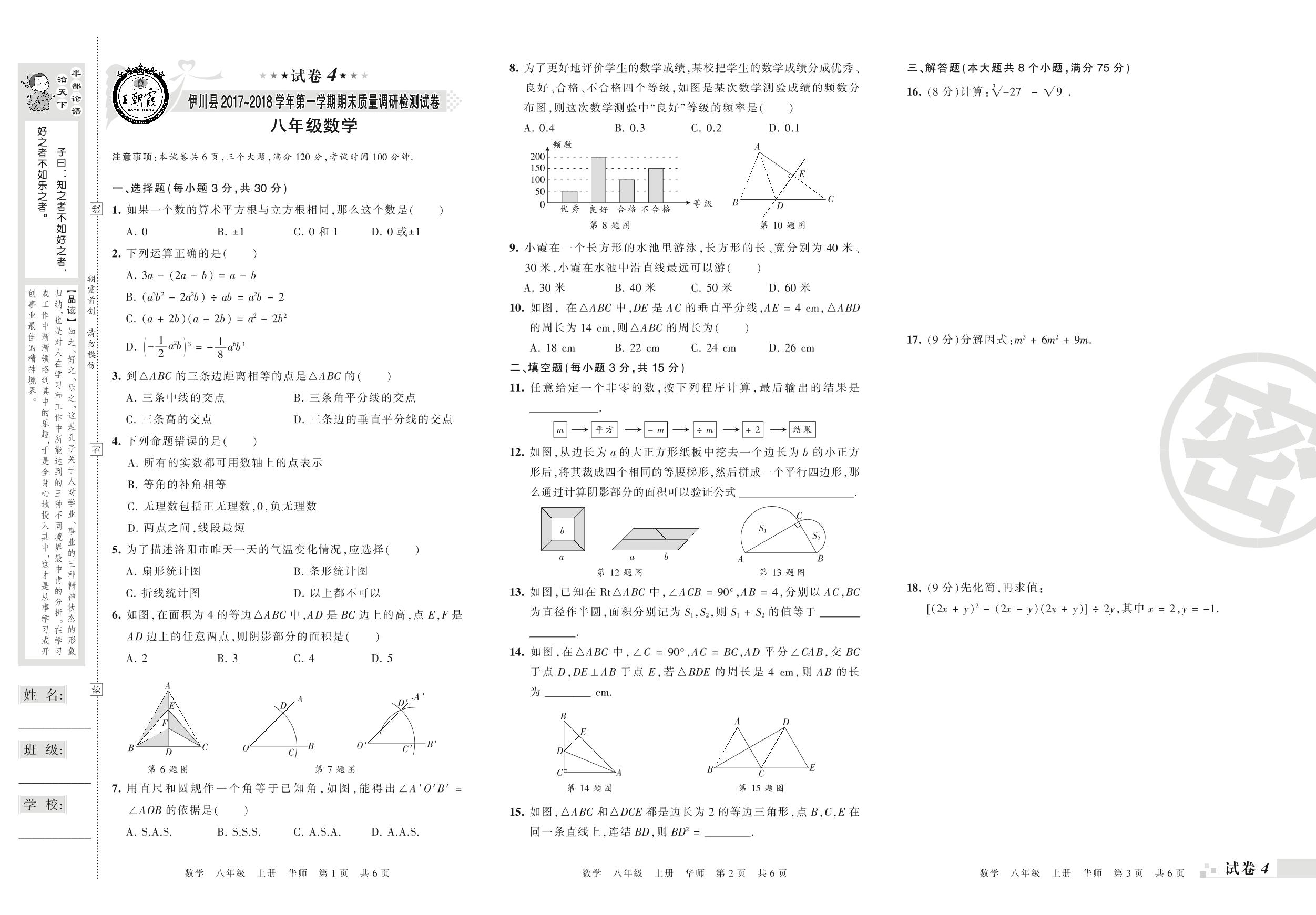 2017-2018学年第一学期洛阳市伊川县八年级数学试卷(华师版)【4】