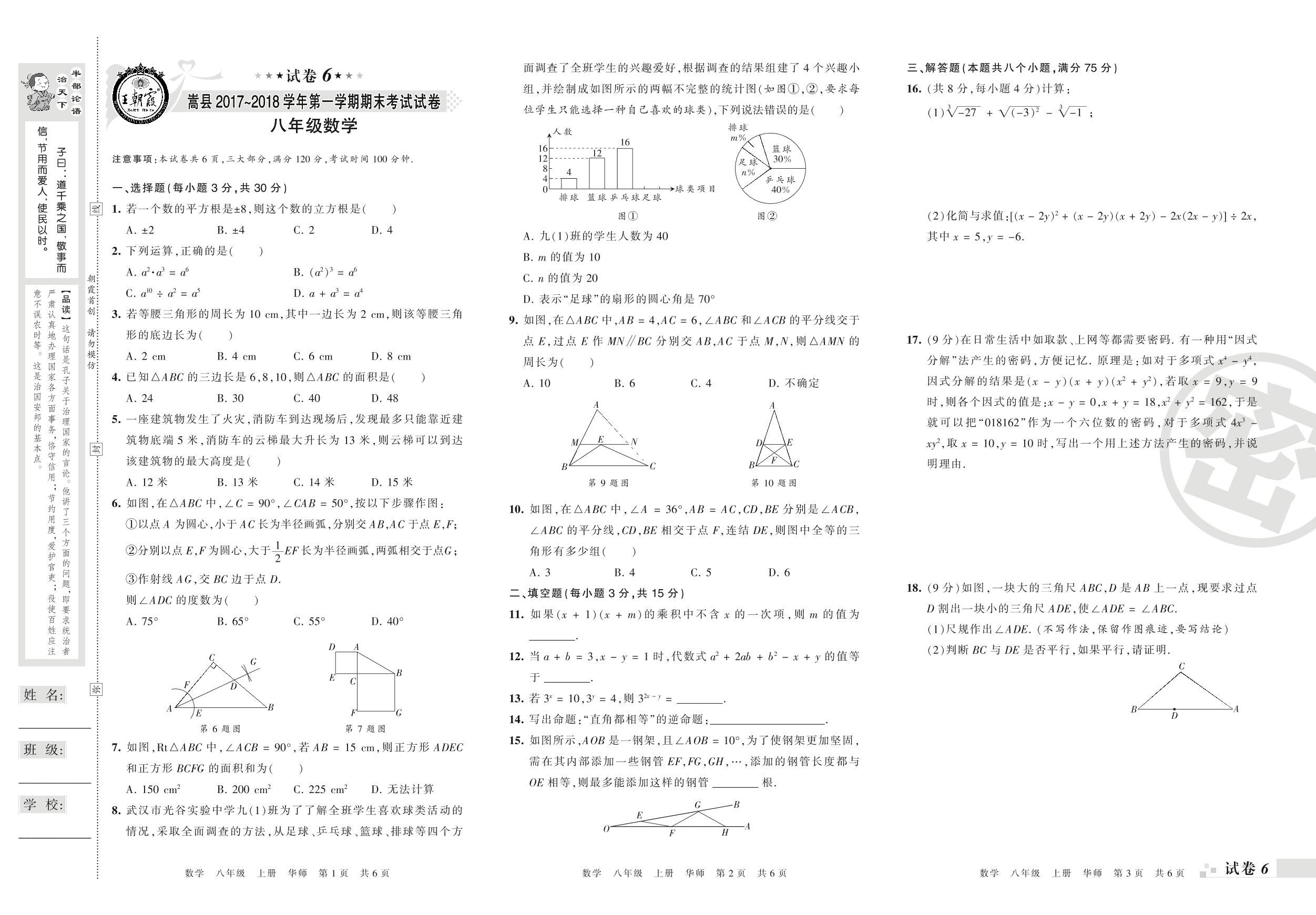 2017-2018学年第一学期洛阳市嵩县八年级数学试卷(华师版)【6】