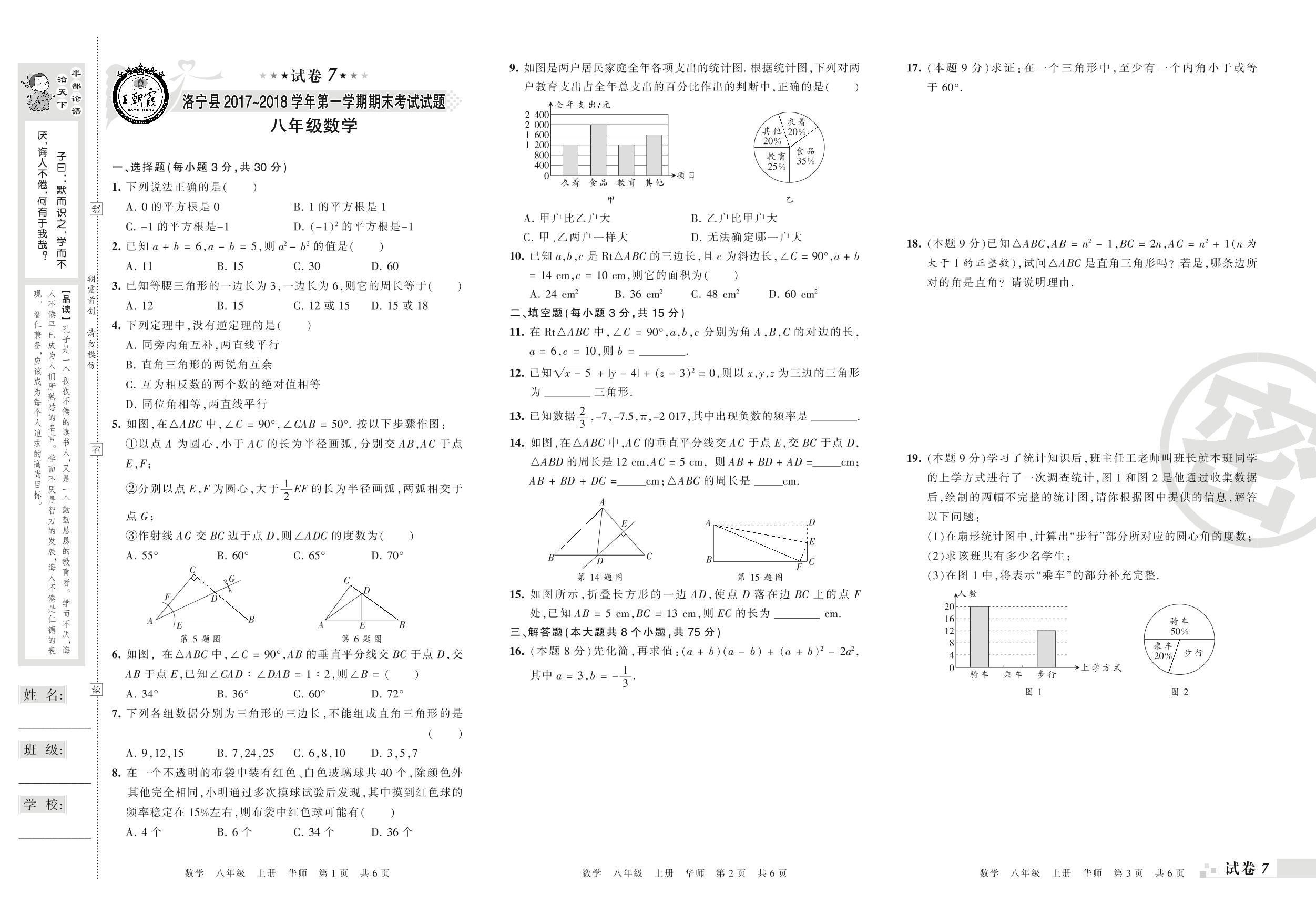 2017-2018学年第一学期洛阳市洛宁县八年级数学试卷(华师版)【7】
