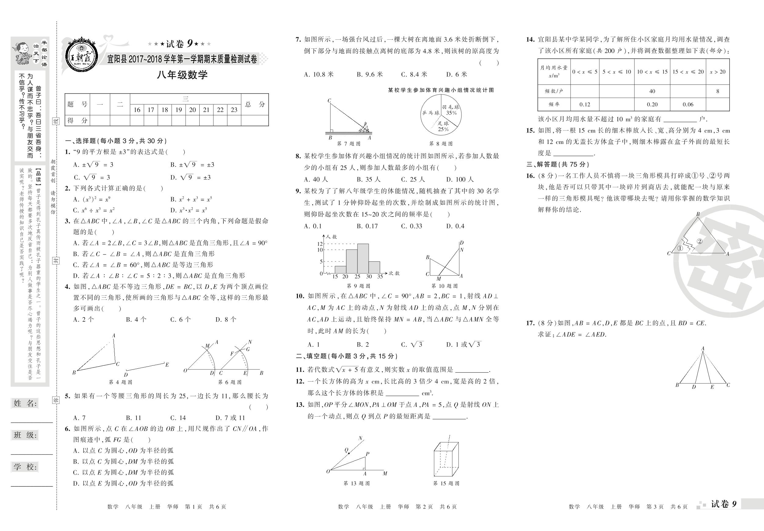 2017-2018学年第一学期洛阳市宜阳县八年级数学试卷(华师版)【9】