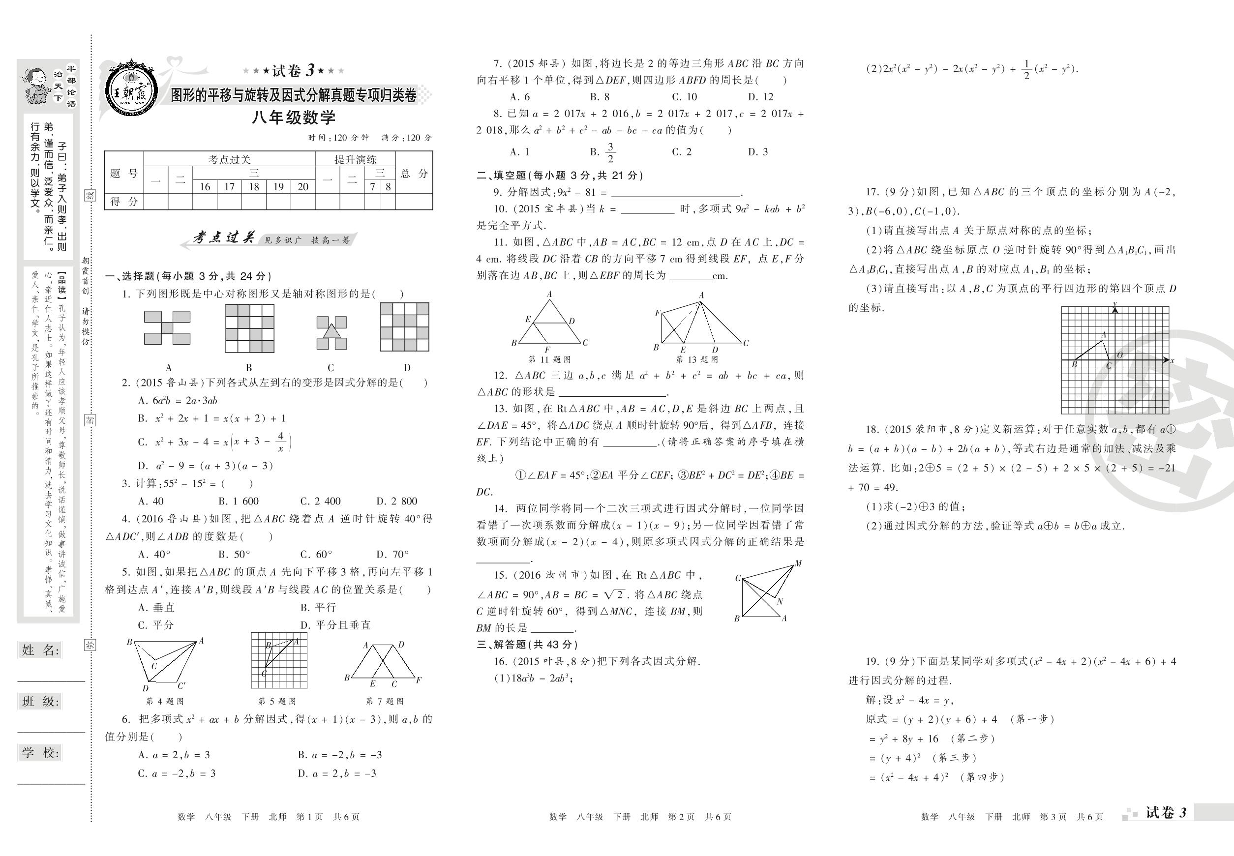 王朝霞期末专项卷——图形的平移与旋转及因式分解真题专项归类卷八年级下册数学(北师版)【3】