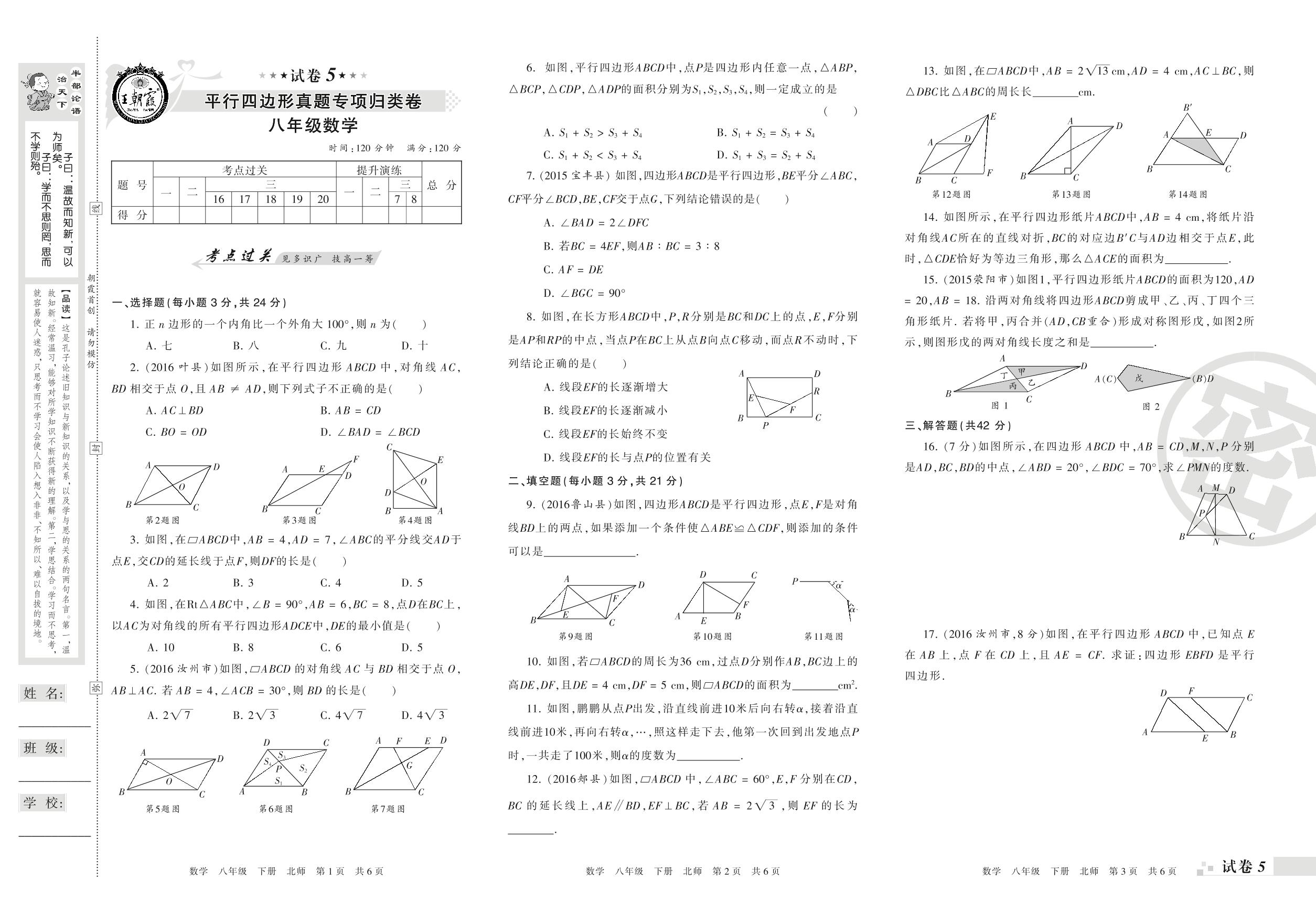 王朝霞期末专项卷——平行四边形真题专项归类卷八年级下册数学(北师版)【5】