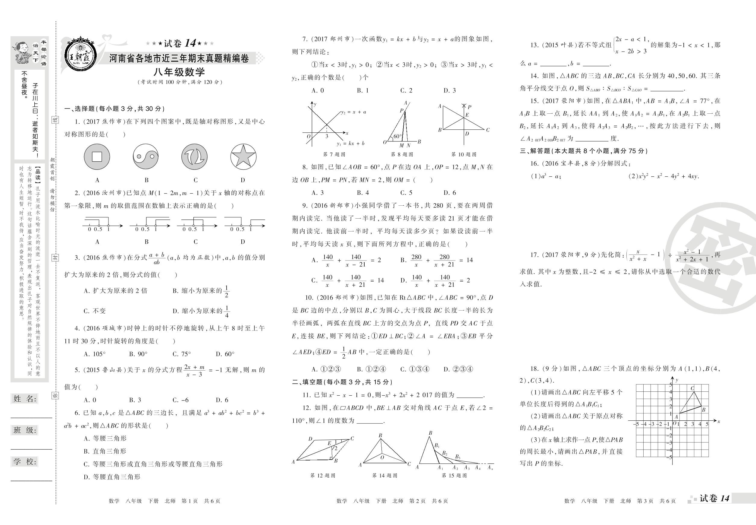 河南省各地市近三年期末真题精编卷八年级下册数学(北师版)【14】