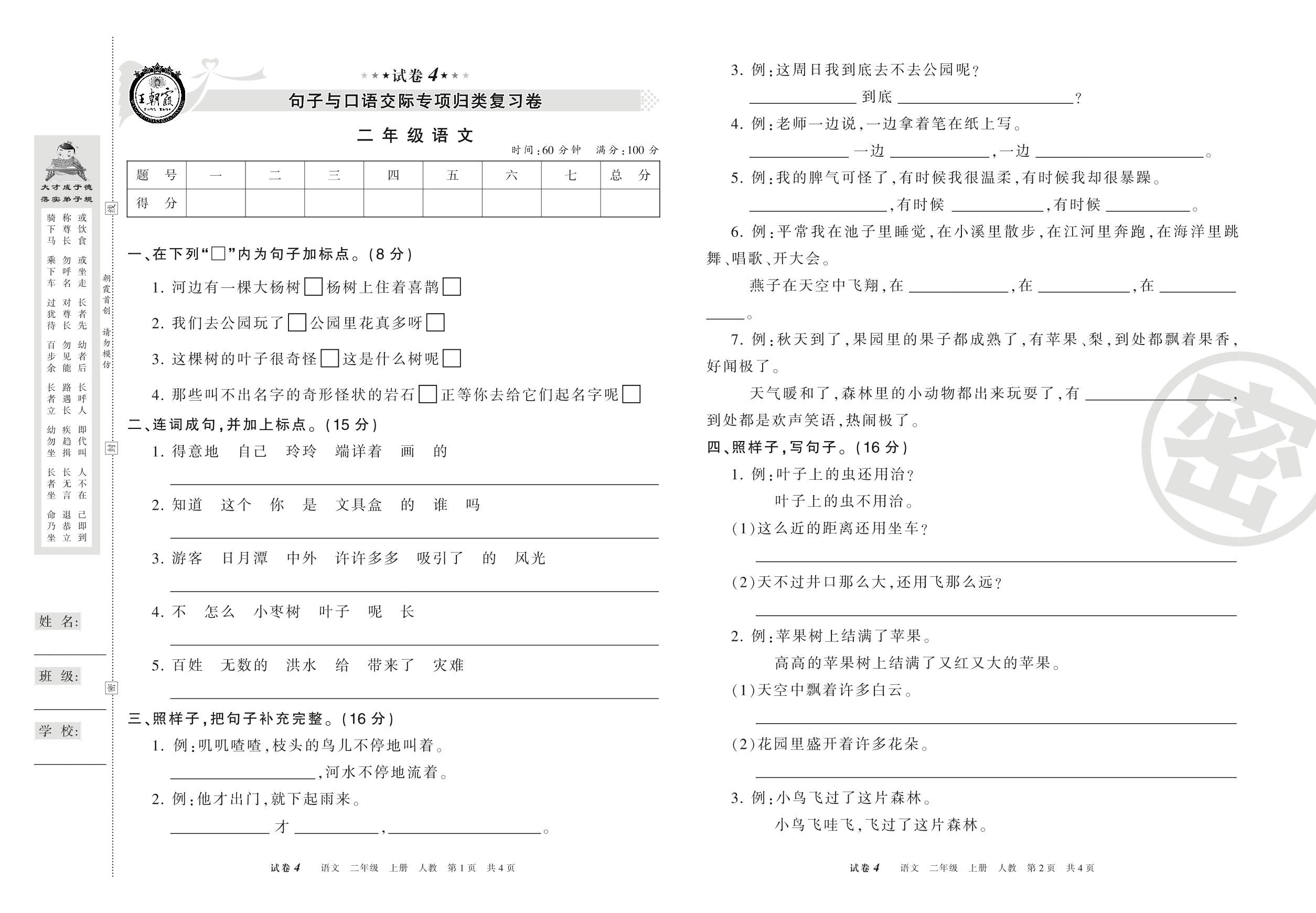 王朝霞期末专项卷二年级上册语文(人教版)_R21080175742【4】