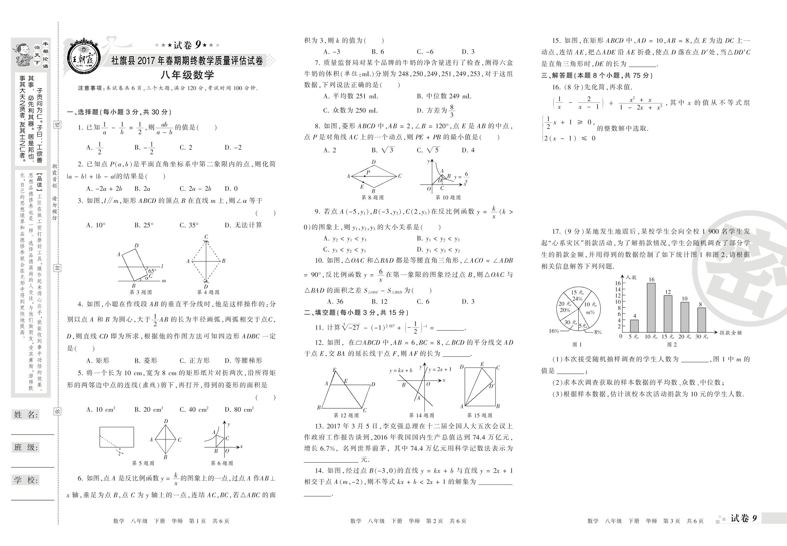 2016-2017学年第二学期南阳市社旗县八年级数学试卷(华师版)【9】