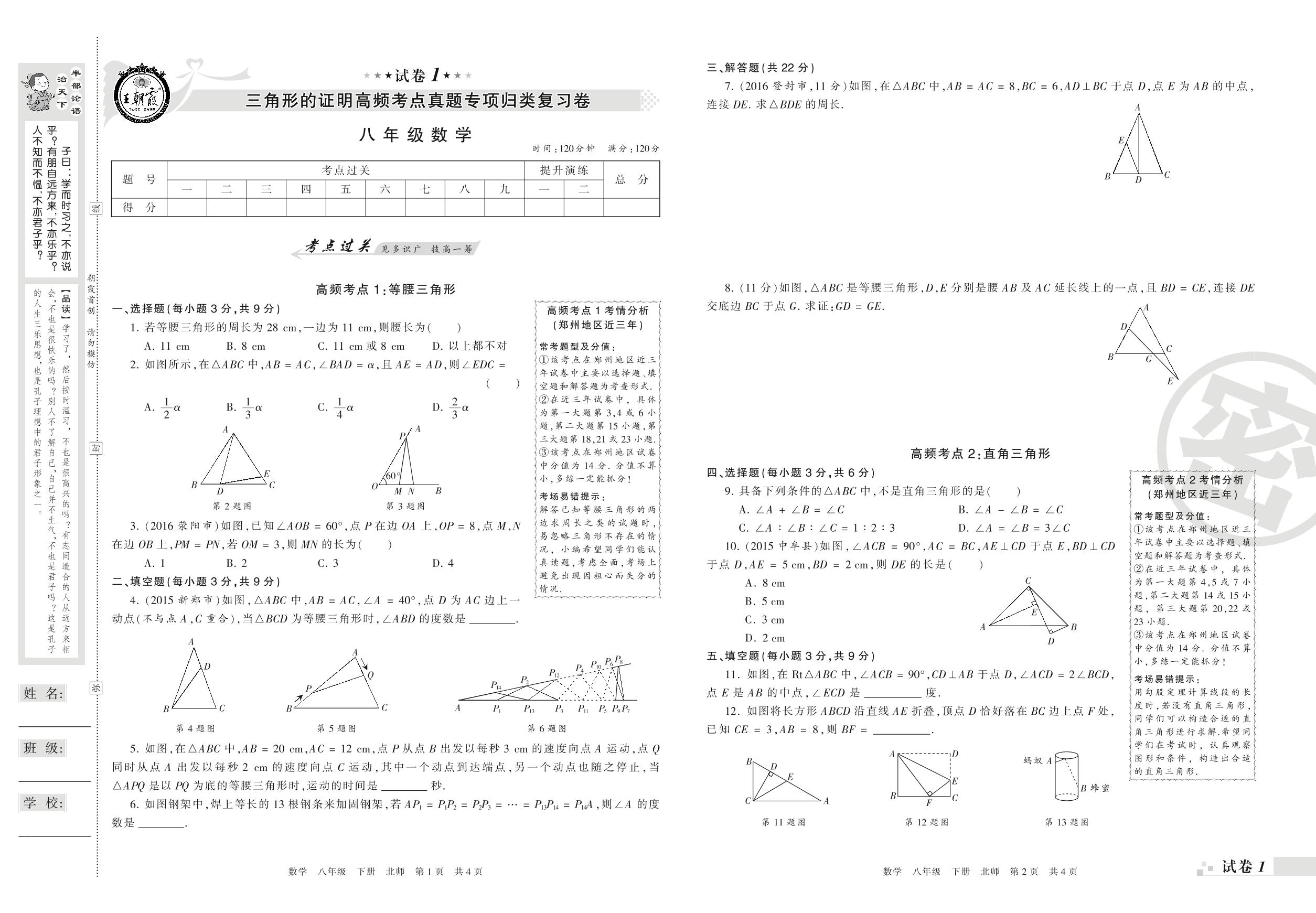 王朝霞期末专项卷——三角形的证明高频考点真题专项归类复习卷八年级下册数学(北师版)【1】