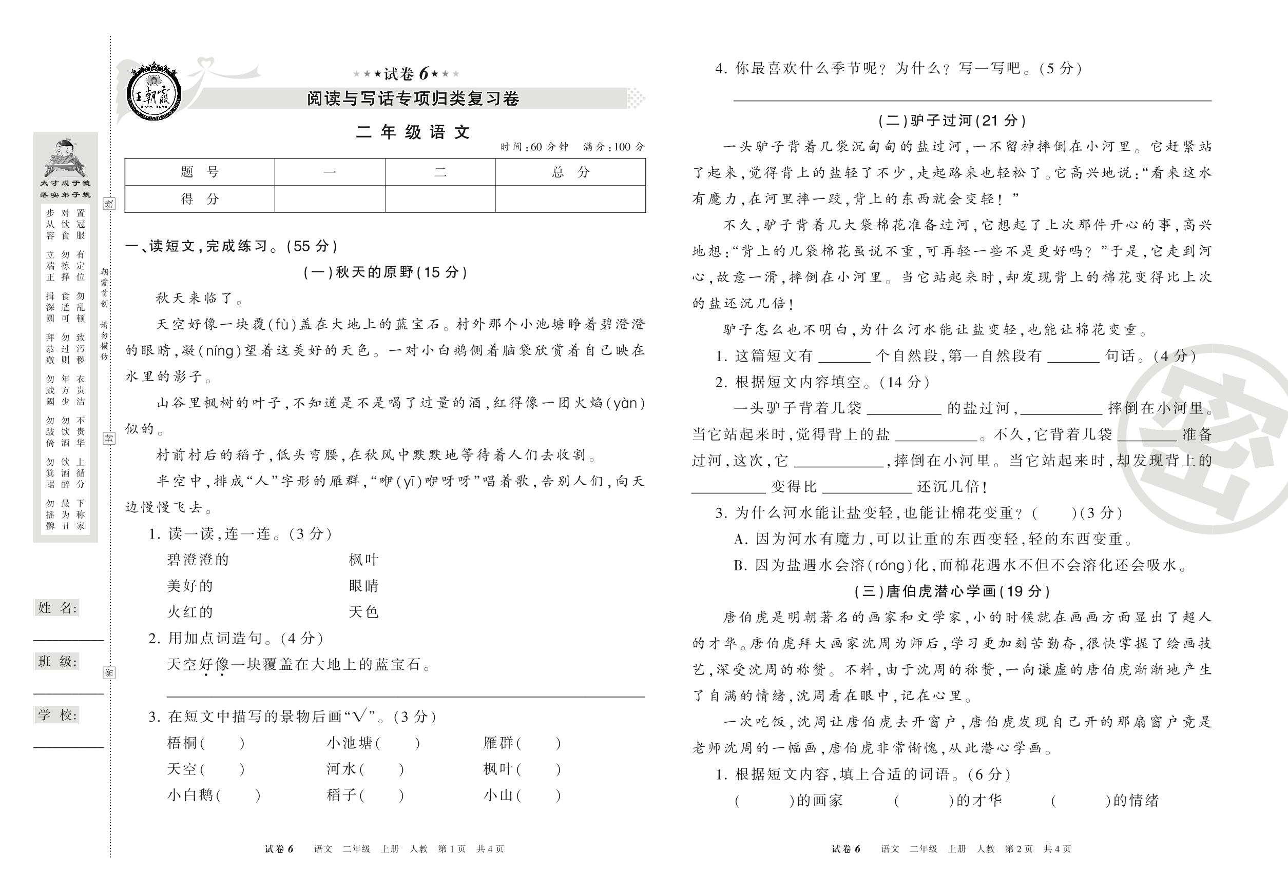 王朝霞期末专项卷二年级上册语文(人教版)_R21080175750【6】
