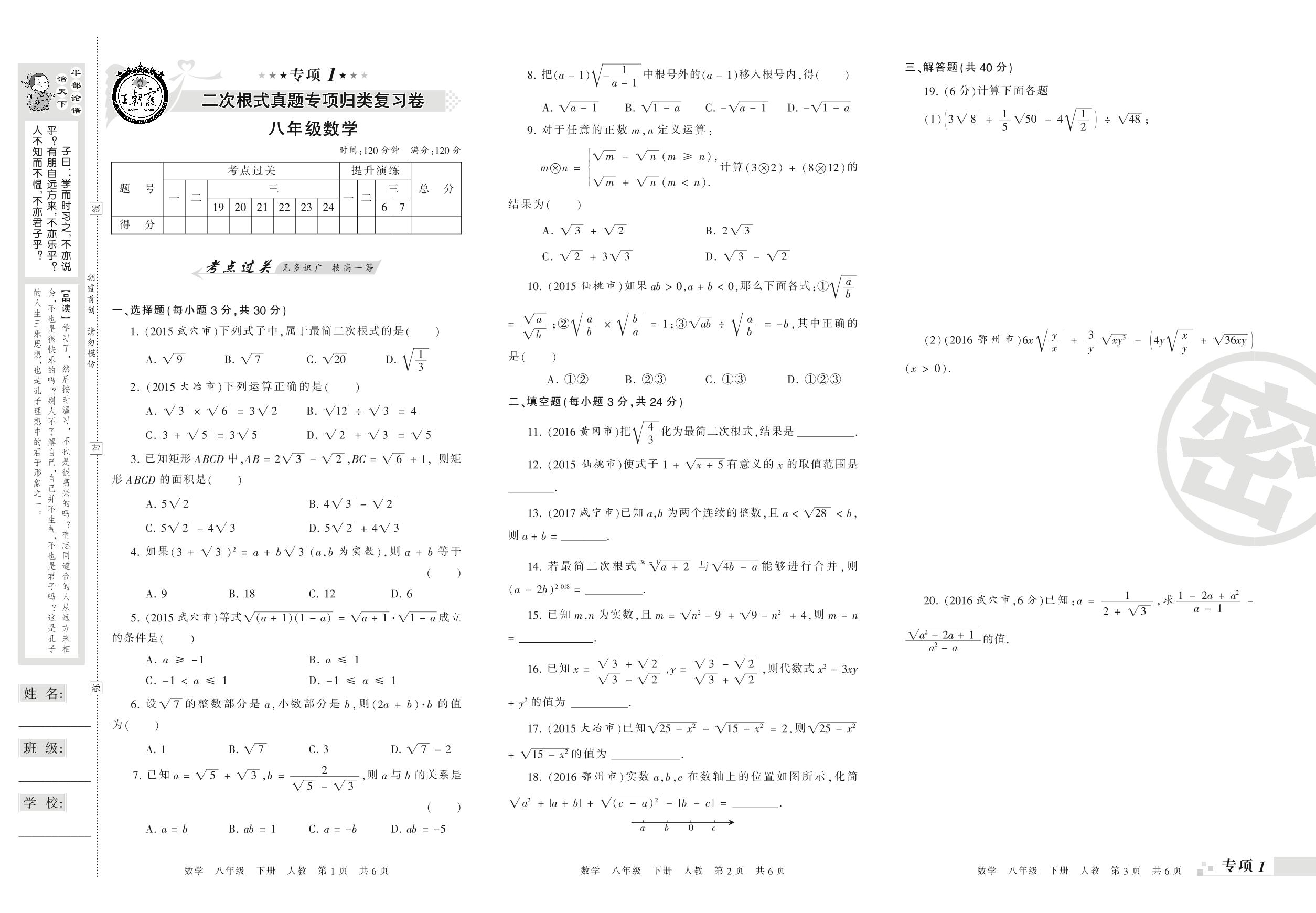 王朝霞期末专项卷——二次根式真题专项归类复习卷八年级下册数学(人教版)【0】