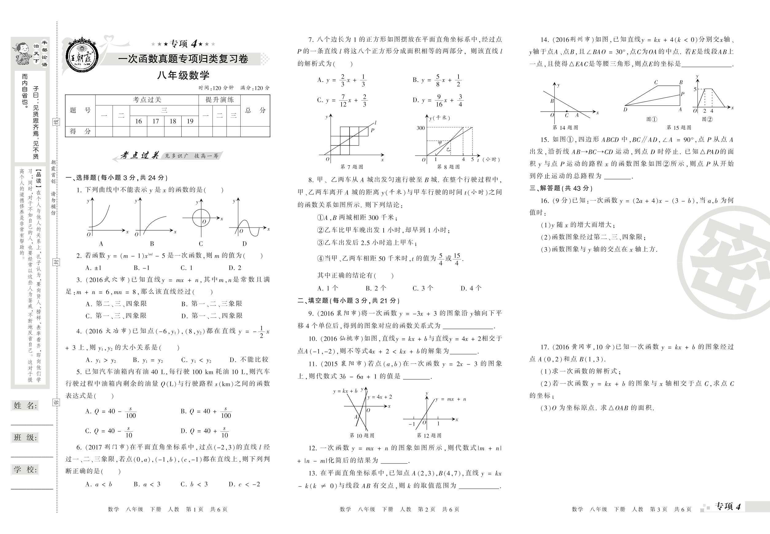 王朝霞期末专项卷——一次函数真题专项归类复习卷八年级下册数学(人教版)【0】